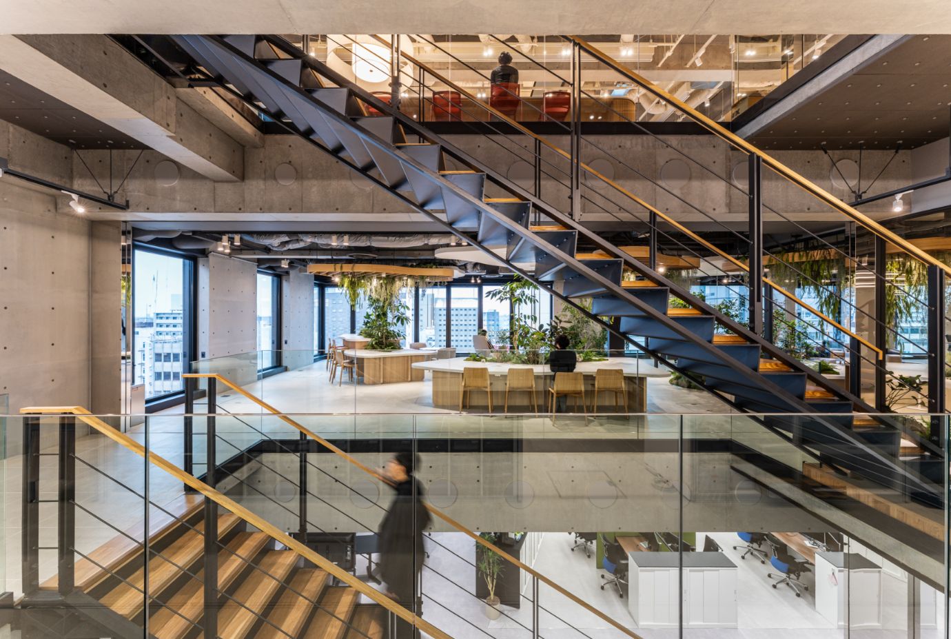 そこで考えられたのが、入居フロアである3層のオフィスがそれぞれ異なる機能と個性を持ち、人が“トラバース(横断)”するように動き、交わることを前提とした設計です。8階は集中を促す「プラント」、9階は交流の「アーバン」、10階はリラックスの「ホーム」として構成され、オフィス内のオープン階段で連結されています。