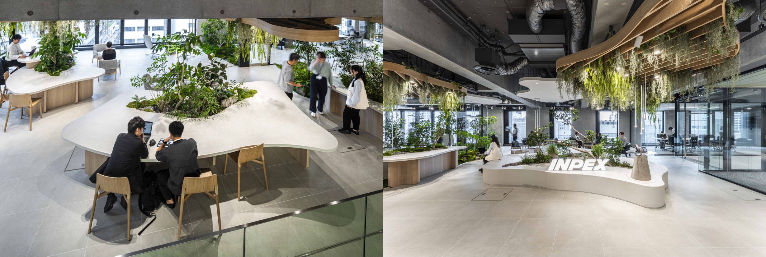 本施設の完成後、新潟駅前からふと見上げた夜景に、INPEXビルの吹き抜け階段が浮かび上がっていた。その階段を行き来する光景がとても象徴的で、人、地域、空間が活き活きと「循環」を体現しているように感じられた-——と西山氏は語ります。この空間には、見た目の美しさや機能性だけでなく、関わった人々との積み重ねが自然と反映されています。設計の意図と使い手の声が交わることで生まれたこの場は、今後も日々の業務や交流の中で、少しずつその意味を深めていくのかもしれません。