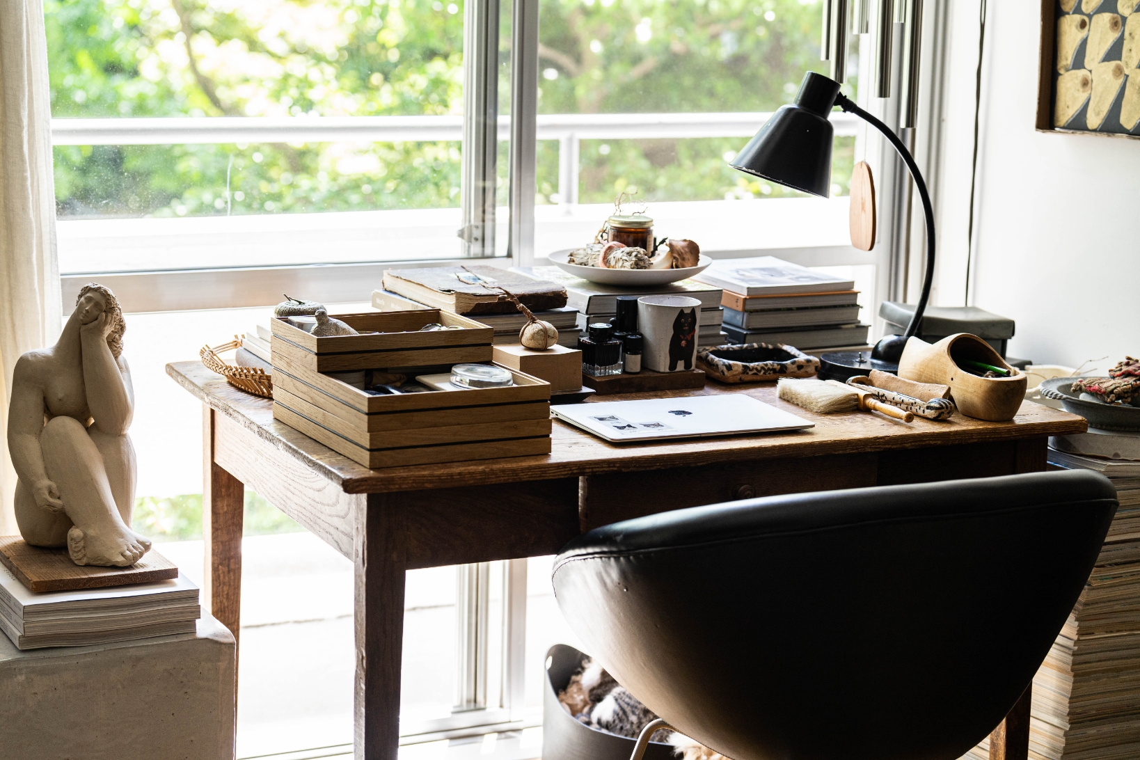 「主役級の大きな家具をレイアウトしたら、あとは、モノが多くても少なくても、美しく配置するのがポイントです。美しくとは、見たときに気持ちいいと感じるかどうか。雑然としている中にも美しさもありますし、スッキリしていればいいというものでもない。その塩梅が大切です」