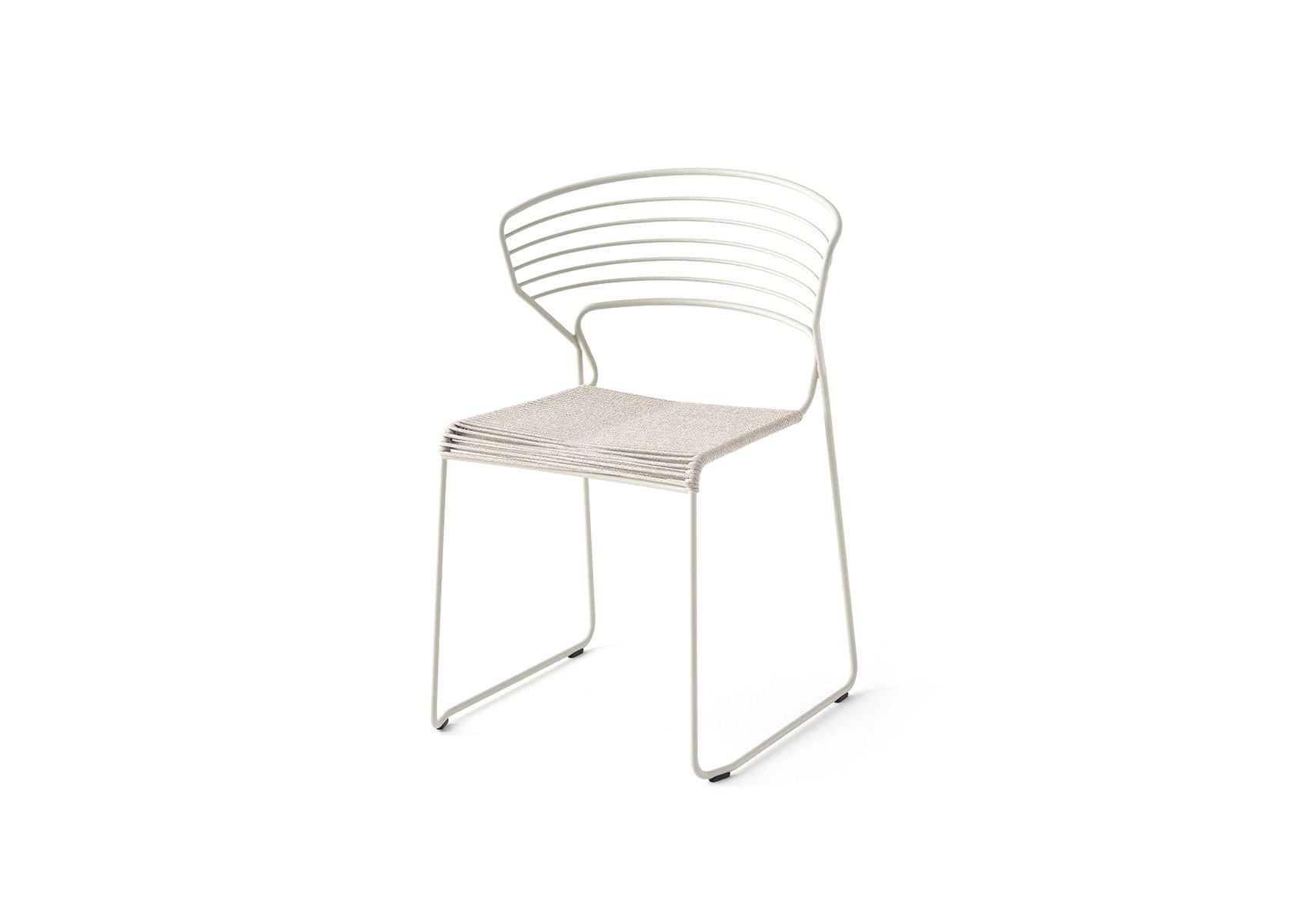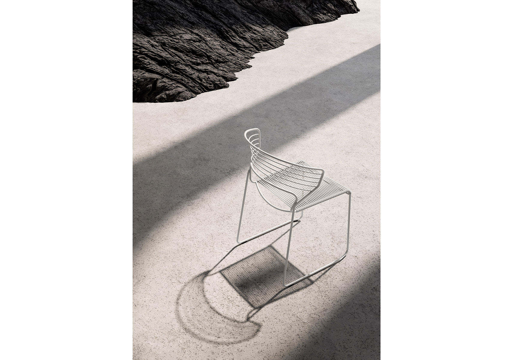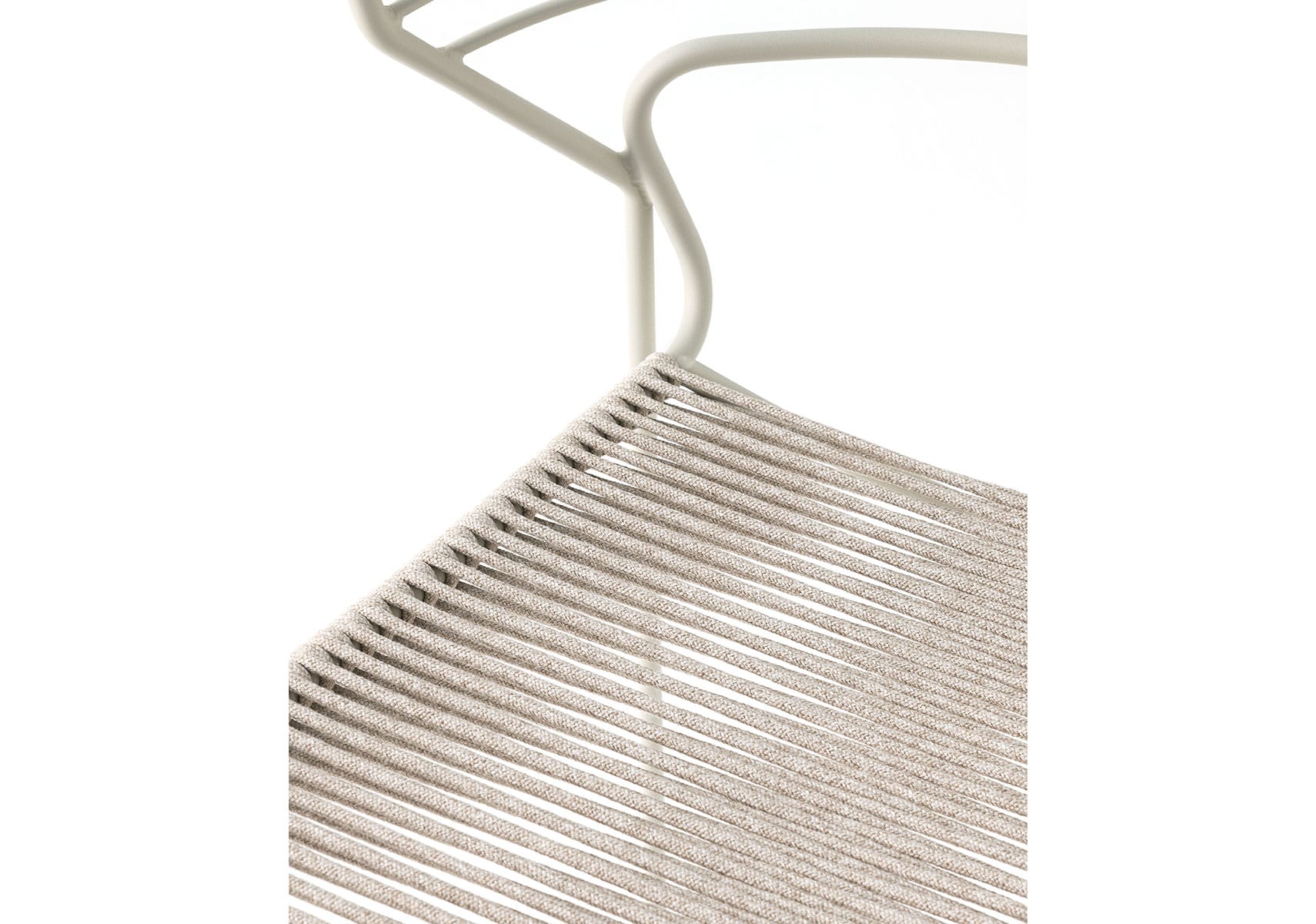 「コキ ワイヤー コルダ」は、繊細な金属フレームに耐久性の高いポリエステルコードが手作業で編みこまれたアウトドアチェアです。 その繊細なフォルムは、アウトドアだけではなく室内でも空間に洗練された美しさを添えます。