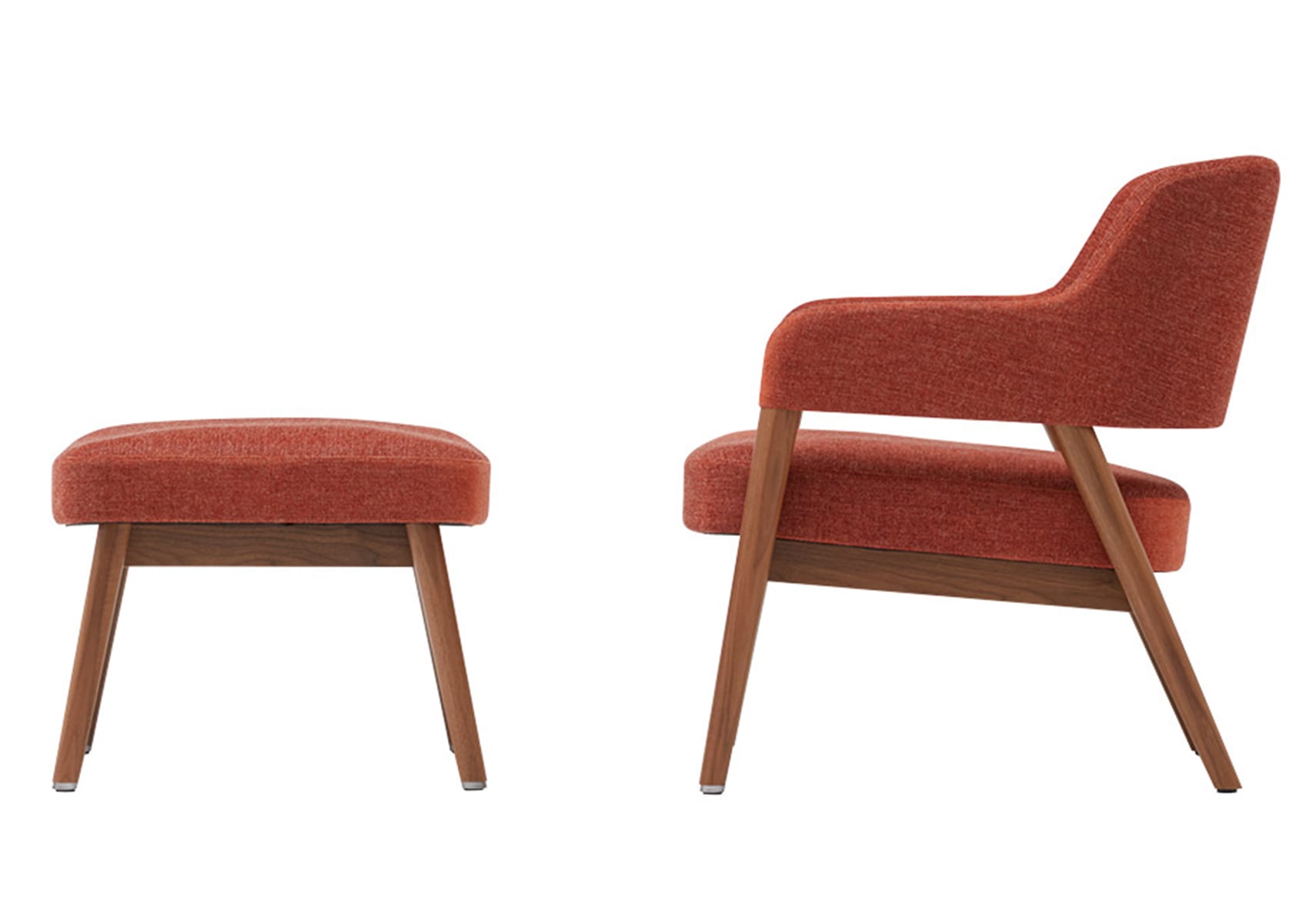 植木莞爾氏デザインのラウンジチェアが登場しました。1960年代のイタリア・ミラノをイメージしてデザインされたTANT-TANT(タンタン)アームチェアと同様に、どこか懐かしさを感じられる優しい雰囲気が特徴です。空間を遮らない背の高さ、ちょうどよいやわらかさの座り心地、背中のホールド感など、随所にこだわりが感じられます。オットマンは、ラウンジチェアと組み合わせて使うほか、単独でスツールとしても使用可能です。