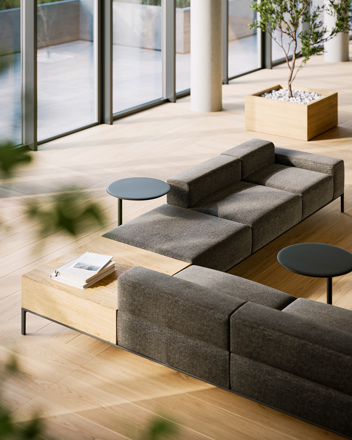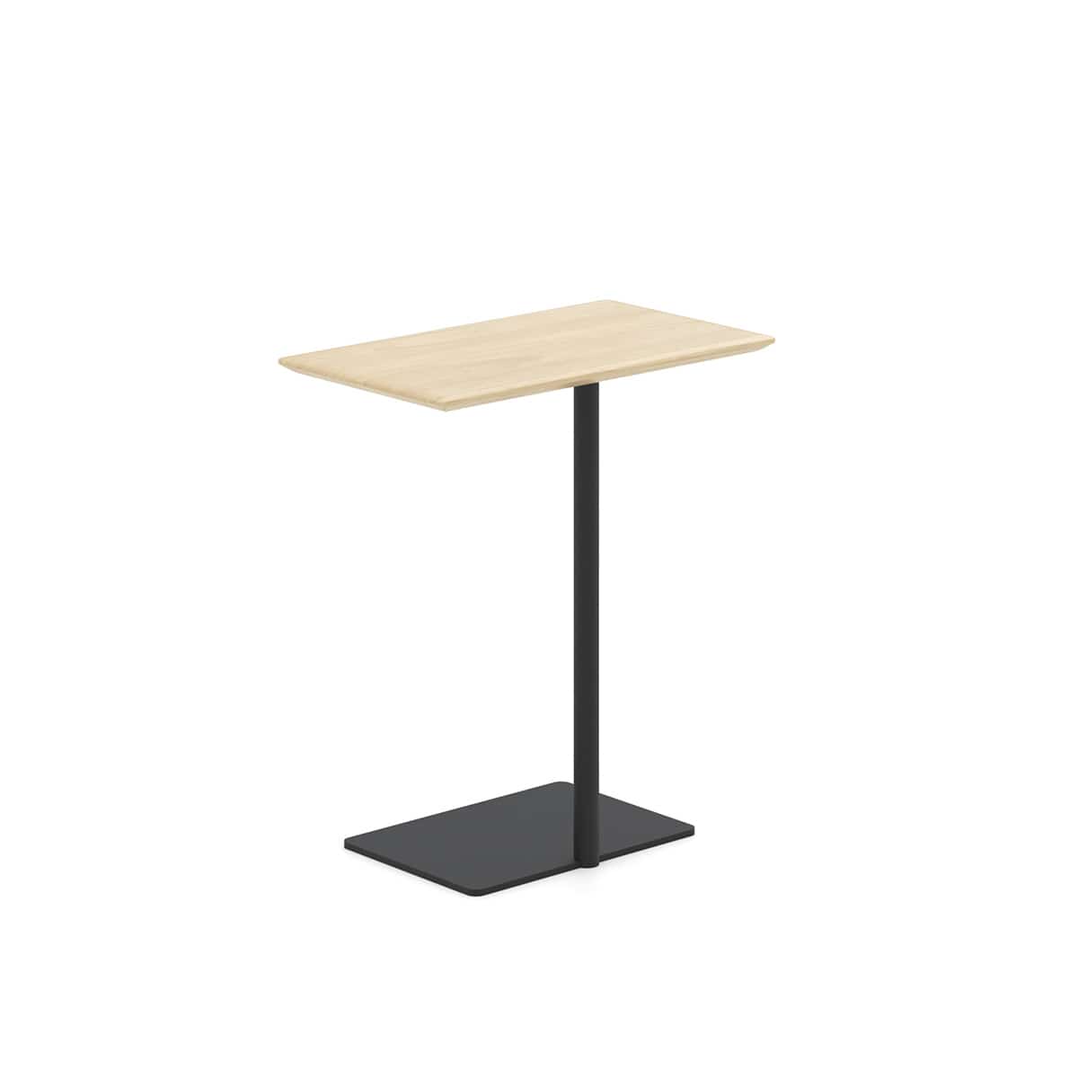 名前の「CON-TE」には「あなたと一緒に」という意味を込めました。隣りや向かいに座る相手にコーヒーなどを どうぞと差し向けることで、ちょっとした動きではありますが、コミュニケーションの脇役にもなります。回転機能を除いたフィックスドタイプは、ソファやラウンジチェアでのワークに適したサイズと高さ。エッジは角の取れた形状で身体が触れた時の感触もやさしく、スクエアタイプの天板サイズはノートPCやマウスの操作にも最適です。