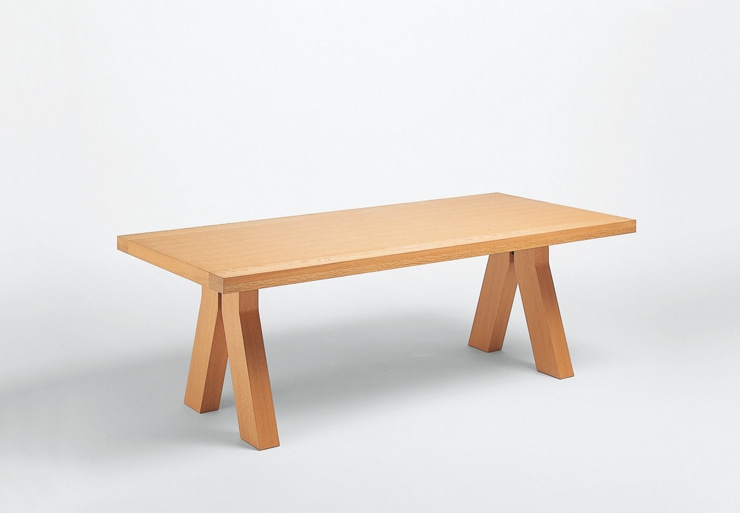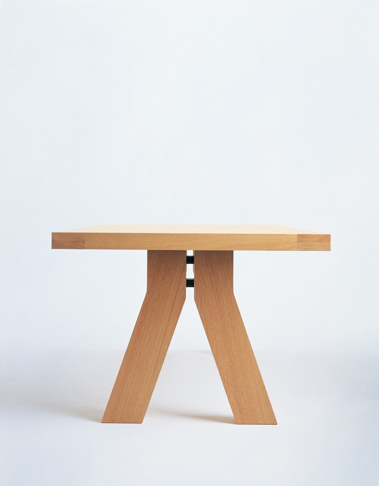 ユーレルのデザインの特徴のひとつである、骨太でマッシブな面が体現されたテーブルです。素材がデザインの大きな要素となる為、高級感のあるオーク材を採用、しかも天板の縁材には無垢材を贅沢に使用しています。高さについてもデザインのバランスを崩さないように本国と同じにしています。同時発売のTYROLチェアとは素材もデザインの方向性も同じなので、コンビネーション良く納まります。