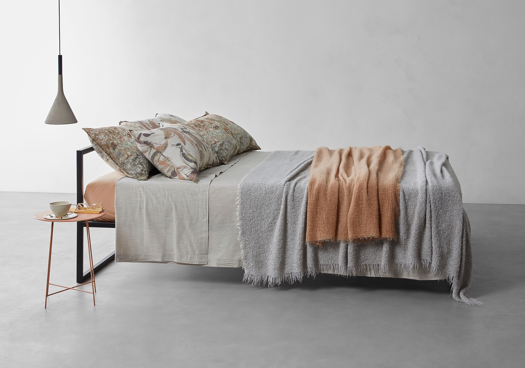 「HOME DRESSING」をコンセプトにし、カラーと素材の全く新しいマッチングによる美を発見し、自らを装うようにインテリアを装うをテーマに作られたホームリネンのラインナップを展開しています。