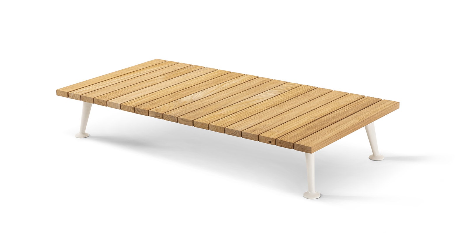 有機的なフォルムのアルミダイキャストのベースに、サンドブラスト加工された無垢のチーク材天板を組み合わせたシンプルな中に素材感の際立つ2種類の高さのローテーブルです。