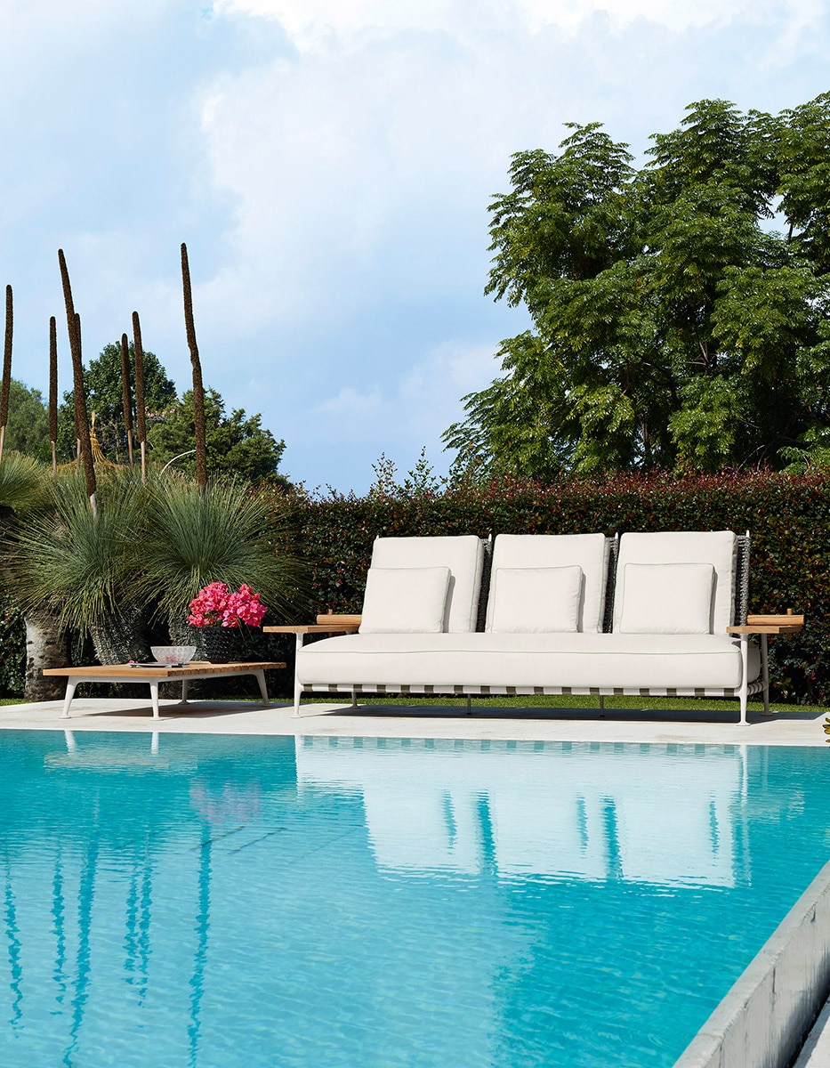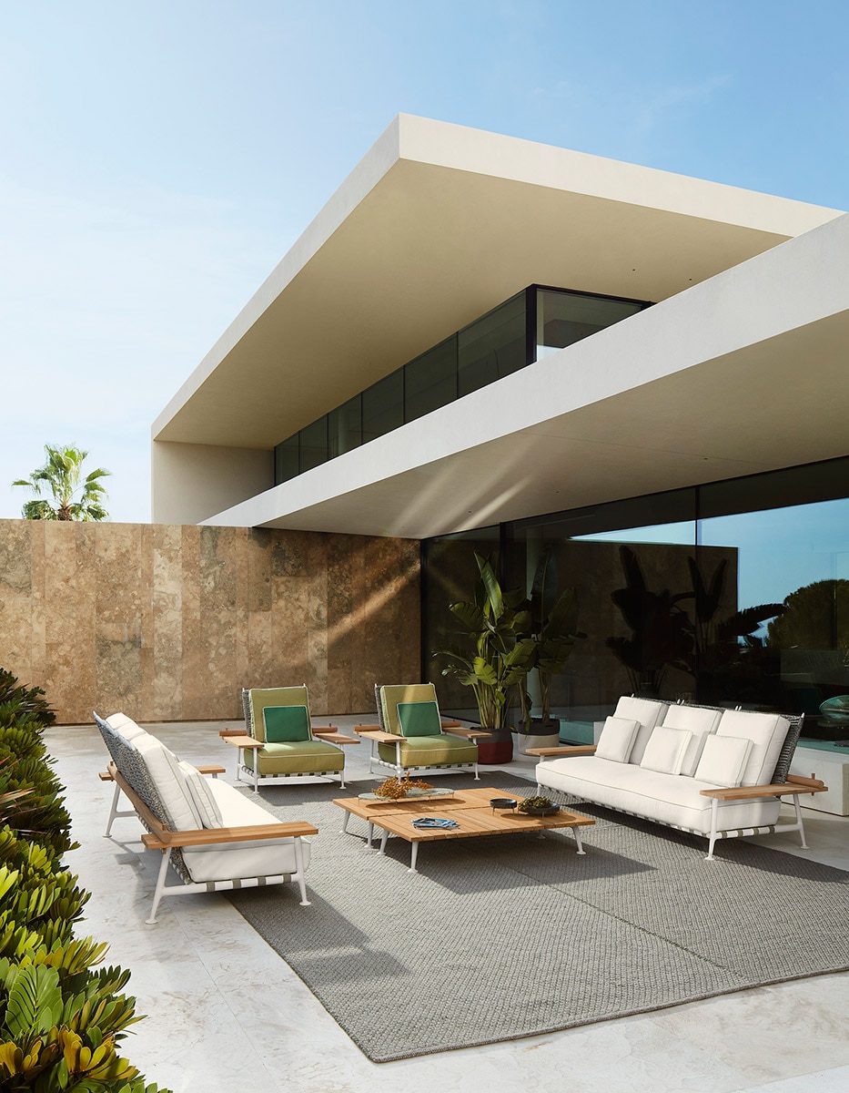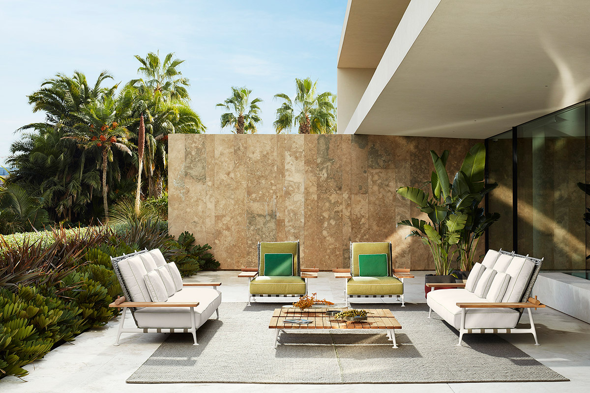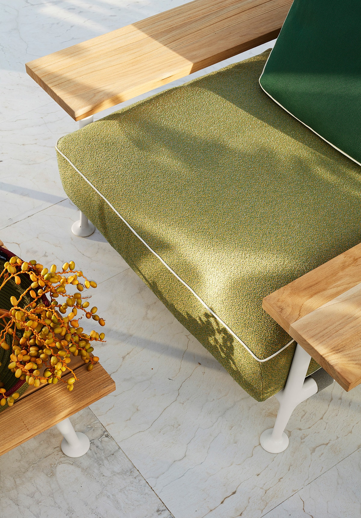 フィリップ・スタルクによるFENC-E NATUREは、自然と調和しつつ優雅でありながらつつましやか…そんな夢のようなライフスタイルを提案します。クッション性のあるパッディングに使用されている革新的な素材SoloSoff🄬により快適な座り心地が実現されています。これは長い研究の成果により実現したフェザーパッディングと同じ特性を保証でき、アウトドアにも適応する素材です。