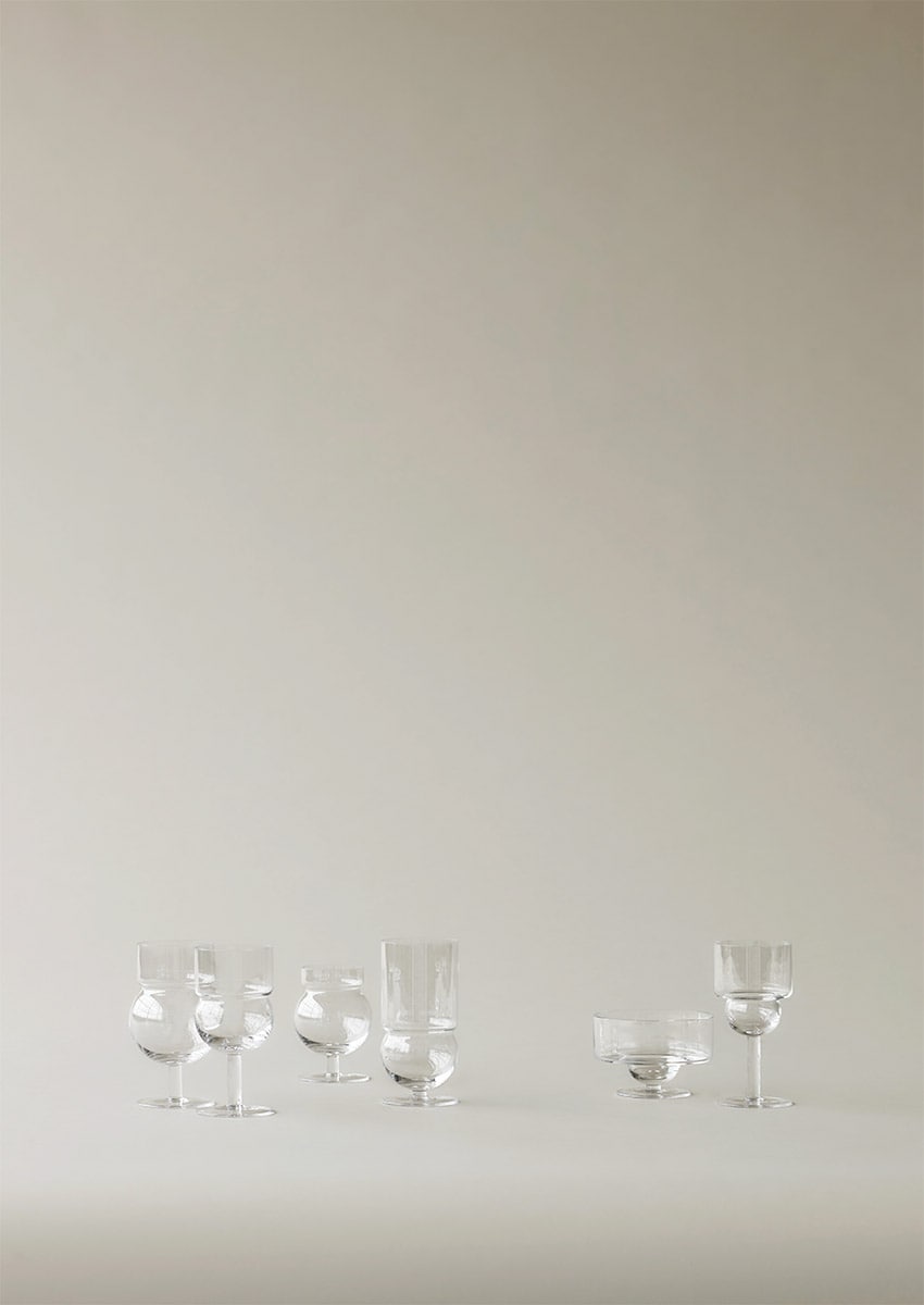 カジュアルで機能的なデザインの力を信じていたJoe Colombo (ジョエ・コロンボ)は、生涯を通じて幅広い種類のドリンクグラスを制作しました。Colombo がお酒とタバコを愛していたことを考えれば、ぴったりのテーマだと言えるでしょう。Colombo は1968 年に幾何学的なフォルムのグラスシリーズ6 種類をデザインしました。デザインに対する彼のカジュアルで機能的な解釈を忠実に再現したグラスは、水、カクテル、ウィスキー、ワイン、ビール、ジュース、シャンパン、アイスクリームなどさまざまな用途向けに作られています。