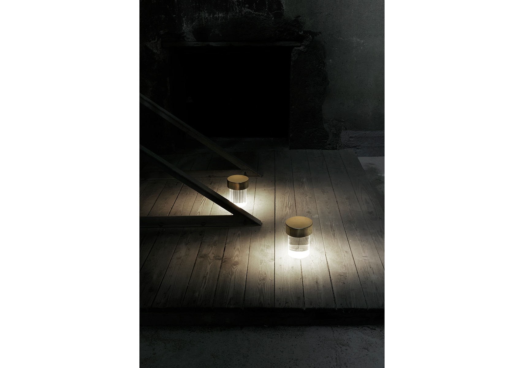 持ち運び可能な充電式のテーブルランプ ラストオーダーは、マイケル・アナスタシアデスがニューヨークの伝説的なフォーシーズンズレストランのダイニングルームのためにデザインしたテーブルランプの進化形です。ガラスは、クリスタルの美しさが際立つミニマルで洗練された外観のCLEARタイプと、古代ギリシャの円柱の建築様式を引用した彫刻的でタイムレスなFLUTEDタイプの2種類。透明なガラスのベースを通して光を拡散します。