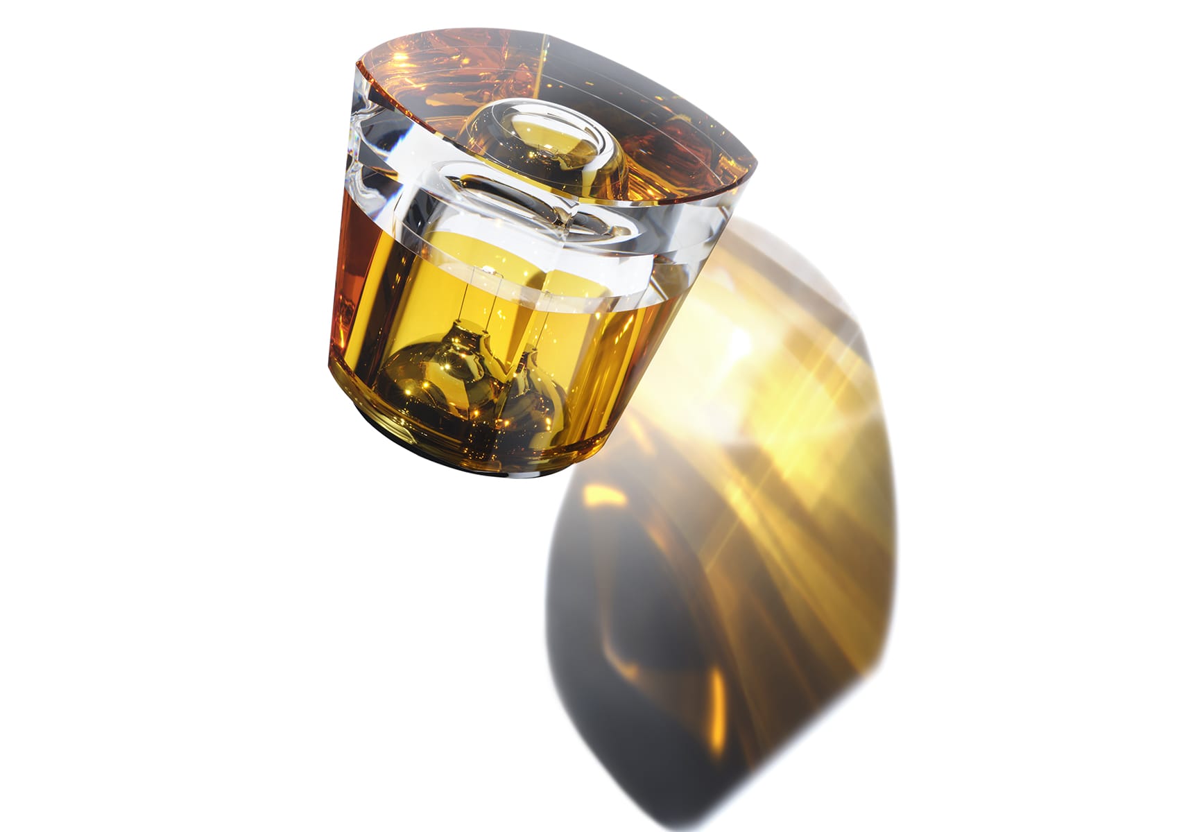 クリスタルガラスの質感を際立たせるシンプルなフォルムと、積層されたクリアガラスとカラーガラスのコンビネーションが生み出す光彩のグラデーションが、艶やかでありながら静けさも纏った光を灯します。