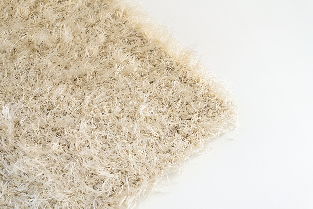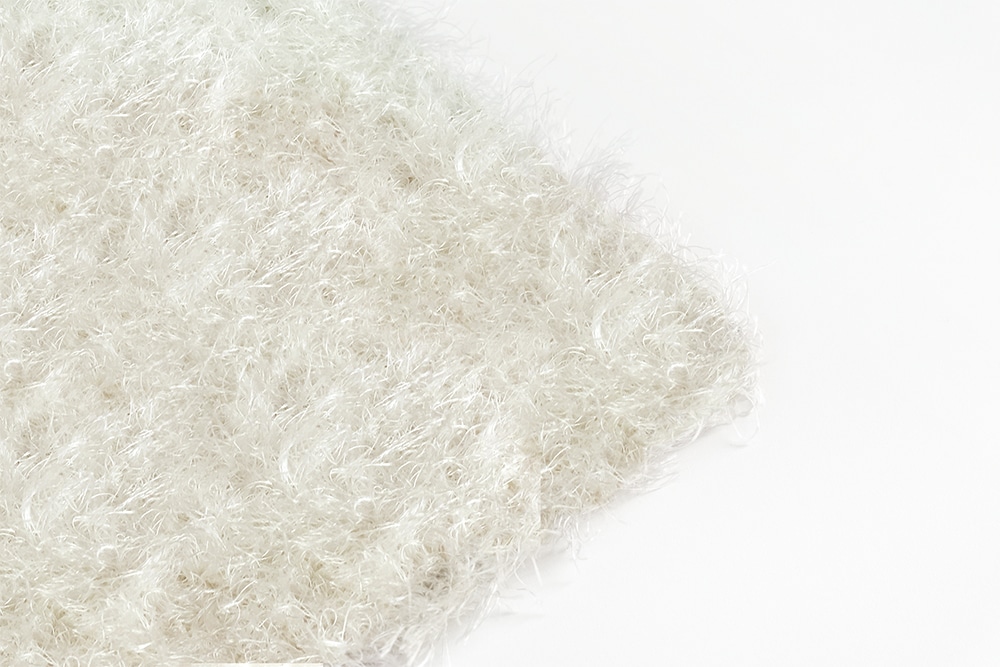 1本の糸から無数の細い糸が枝分かれすることにより、柔らかな肌触りのボリューム感が実現しました。毛足が長いので、高級感あり、ラグジュアリー感を表現できます。