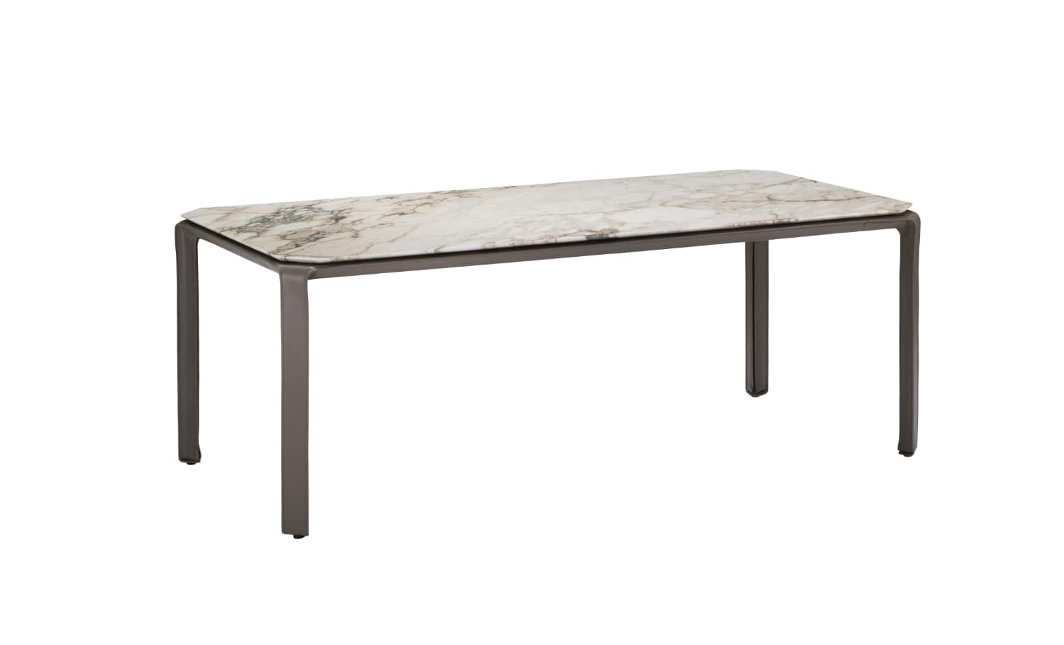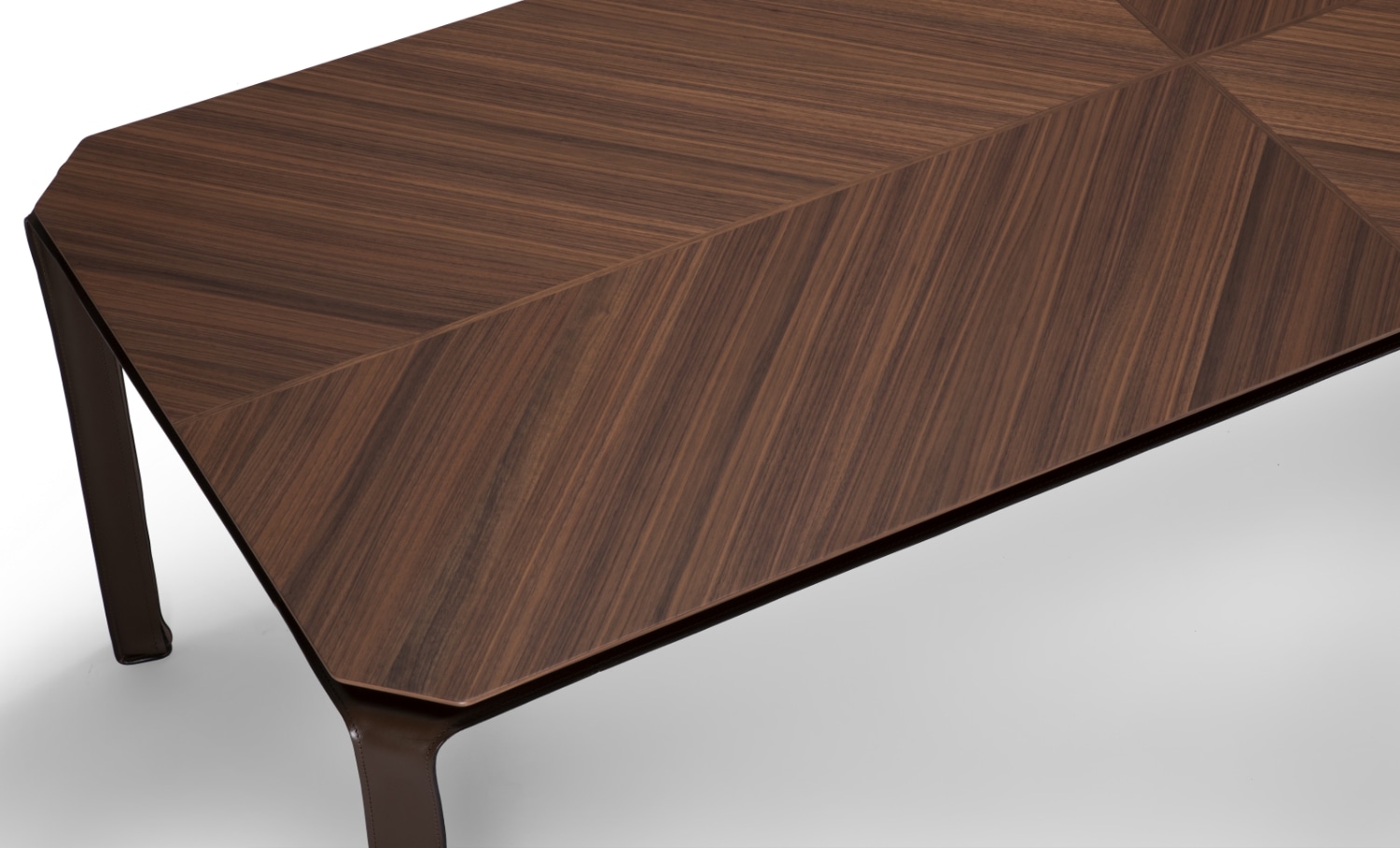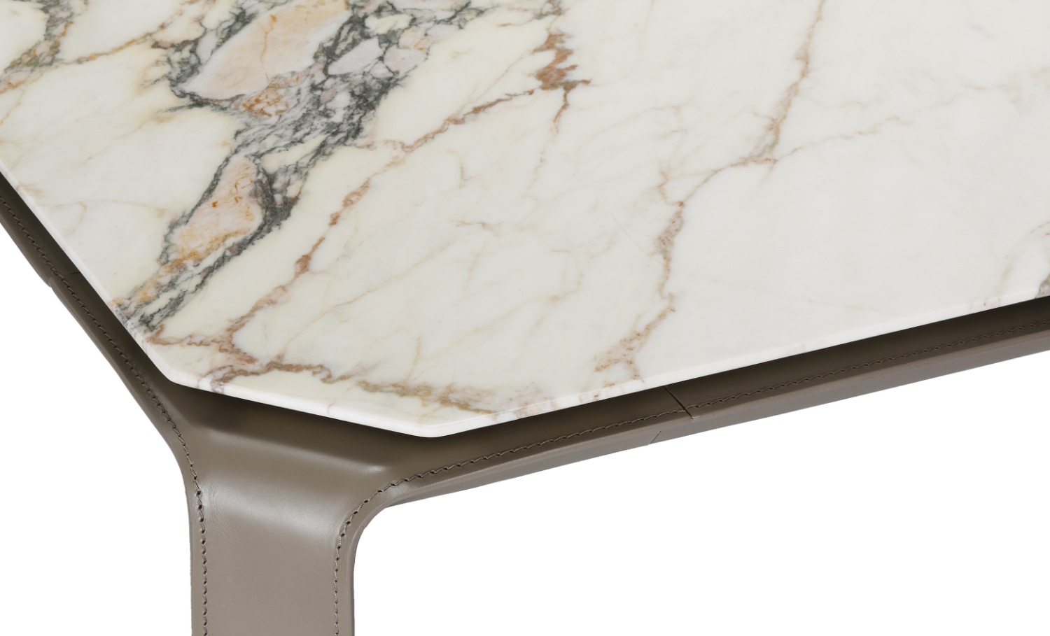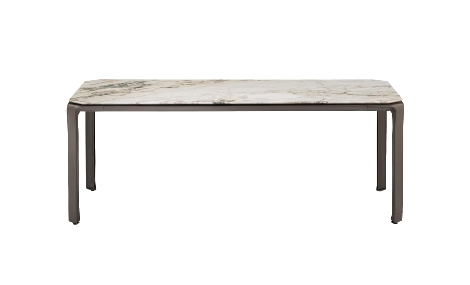 建築家マリオ・ベリーニによってデザインされたCABシリーズに、ダイニングテーブルが加わりました。1977年以来のベストセラーCABチェアと同様に、CAB TABテーブルはカッシーナが長年培ってきたサドルレザーの高度な職人技を用いて作られています。カットされたいくつものレザーパーツを職人の手作業で丁寧に縫い合わせ、テーブルのメタルフレームを覆っています。特に細部にこだわり、テーブルの脚部には美しいステッチを見ることができ、テーラーメイドドレスを想起させるような仕上がりです。