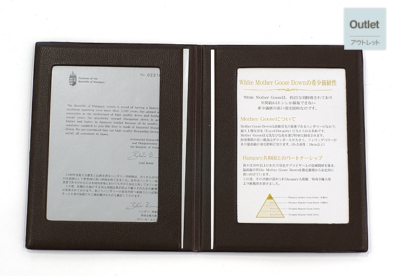 ※すべての製品にハンガリー共和国大使による推薦状と、日本羽毛製品協同組合発行のプレミアムゴールドラベルが付いています。