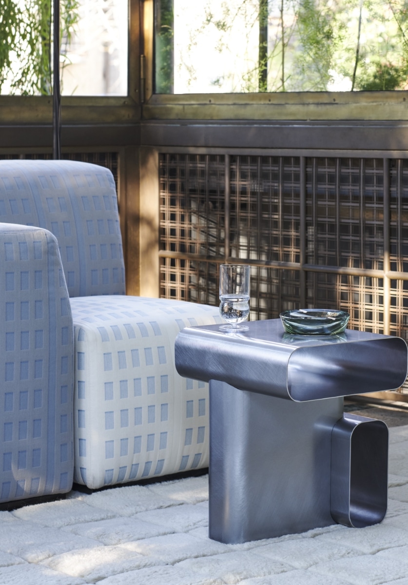 彫刻的な量感、対照的な質感。SOFT CORNERS(ソフト・コーナー)の特徴は、建築の要素、とりわけ、様々な形が互いに支え合って完成する石垣の安定した構造から着想を得てデザインされました。3種類のソフトな形状のオットマンと、対照的なインダストリアルな雰囲気のスチール製コーヒーテーブルのコレクションを自由に組み合わせることができます。