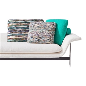 アントニオ・チッテリオが初めてカッシーナのためにデザインしたソファシステム「ESOSOFT(エゾソフト)」は、流れるような形状で柔軟な構成を実現します。アルミニウムのフレームが有機的なシートを支え、そこに快適なクッションを配置。1960年代のカジュアルな快適さを彷彿させる形状です。カッシーナ・ラボの研究により、循環型素材である生物由来のポリオールを含むポリウレタンフォームや、リサイクルPET綿などを採用しています。 ソファのモジュールは8つで、クッションはサイズや形、ボルスターの有無などバリエーションがあり、ベンチやオットマン、大理石やフルートガラスを天板とするコーヒーテーブルも揃い、リビングルームが完成します。