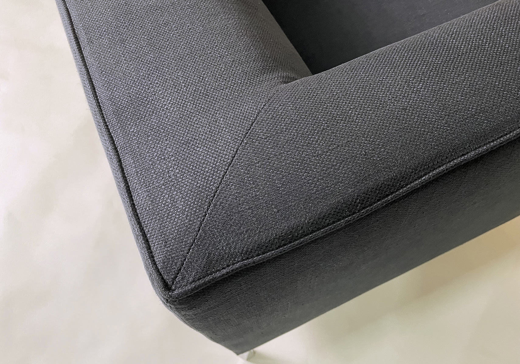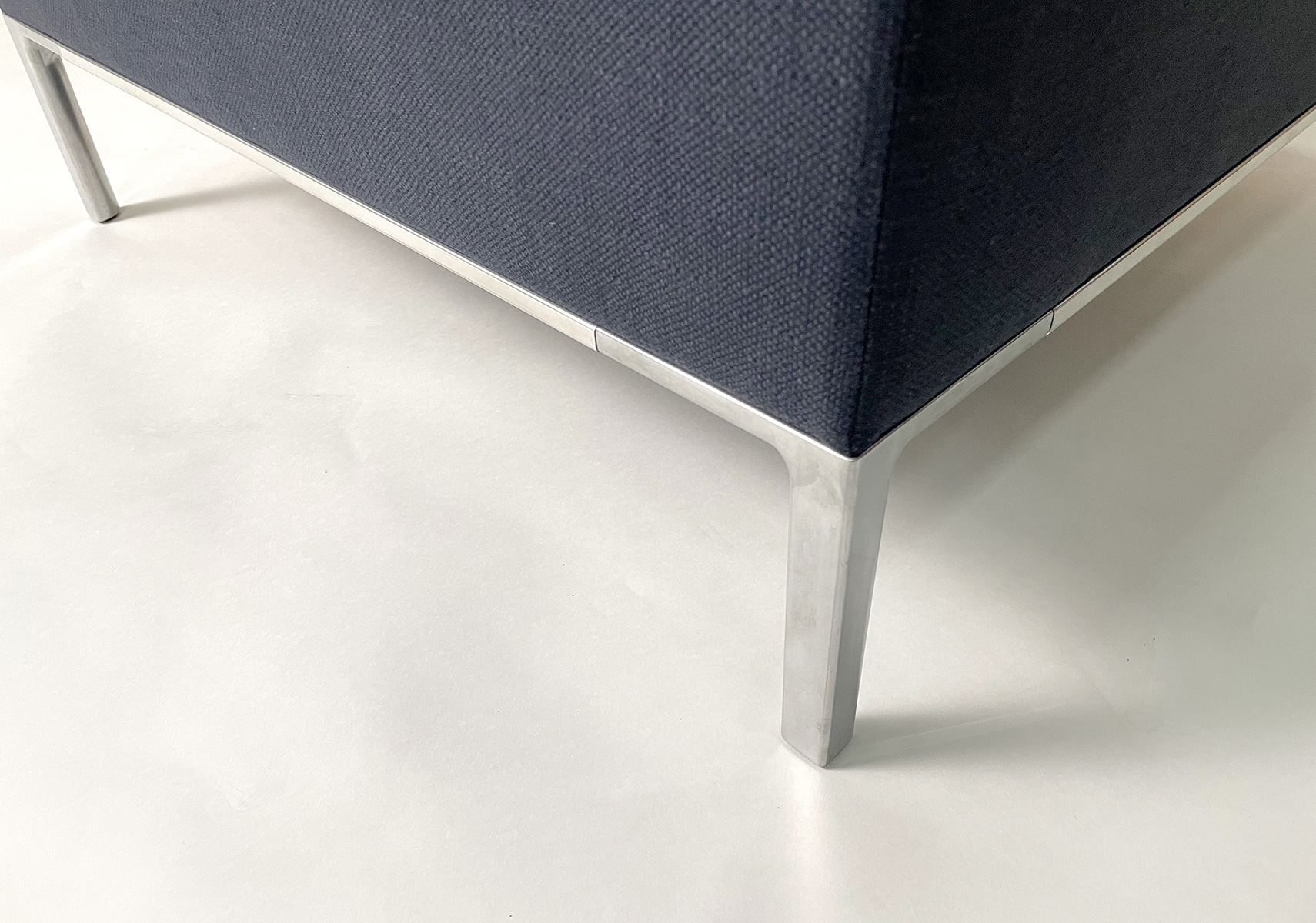 肉厚なクッションで重厚感がありながらも、細身の脚部により軽快でスタイリッシュな印象も持ち合わせるソファ。外側は四角いフォルムでフォーマルに、反対に内側には少し丸みをもたせ、緊張を解きほぐすような座り心地です。きちんとした印象を与えたい応接スペースやエントランス等の共用部に最適なデザイン。ミディアムサイズは、装飾性を排したミニマルなデザインの中に最大限の快適性を備え、シンプルでありながらも上質な雰囲気を漂わせます。エグゼクティブな空間のおもてなしにふさわしいソファです。
