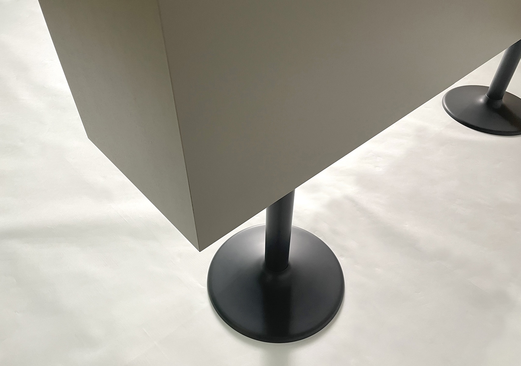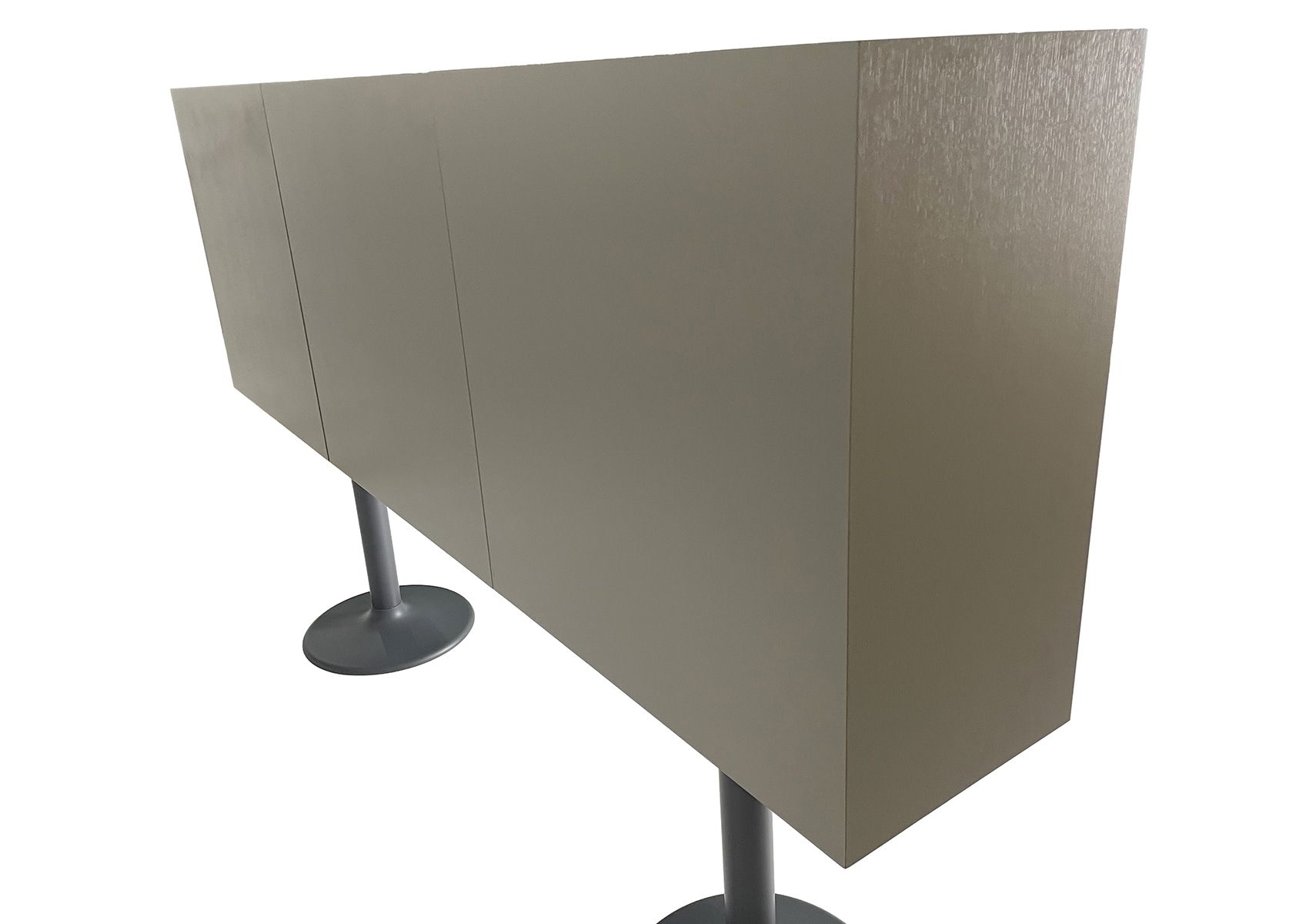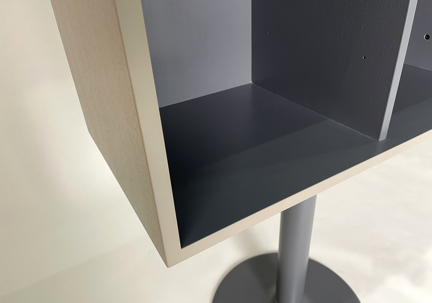 コンテナ本体=オーク材・カラー塗装仕上(トープ) 2ドア/フラップドア=木製・スレート色塗装仕上 ベース・脚=スティール・グレー塗装仕上