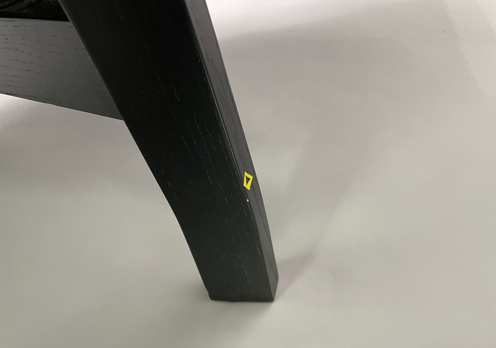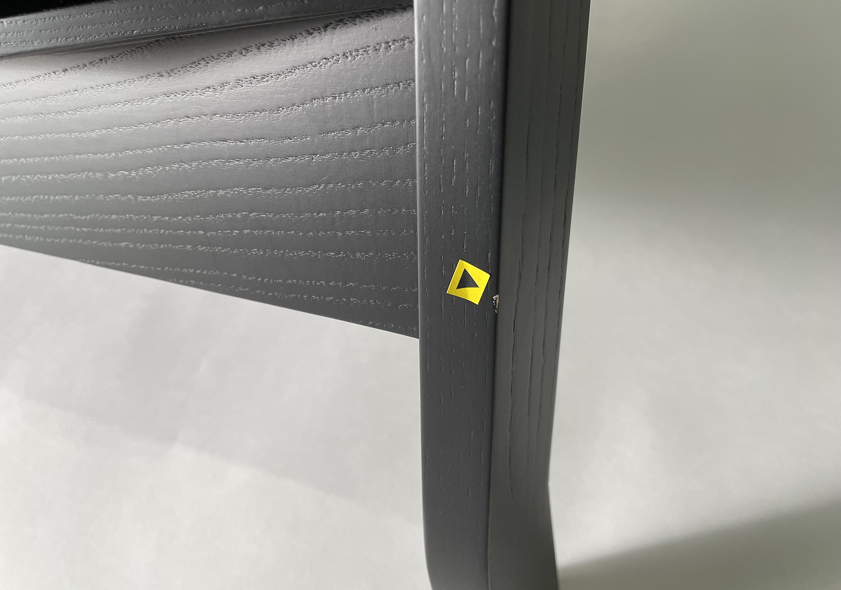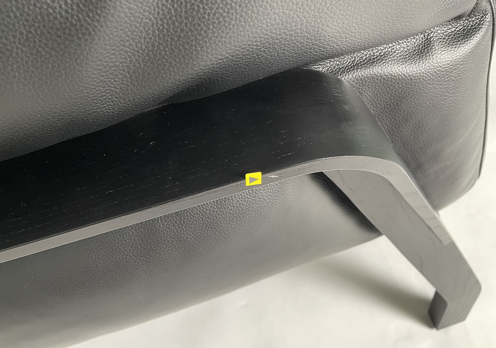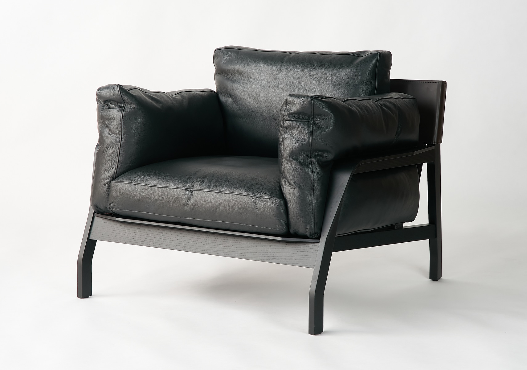 - フレーム=アッシュ材・ブラック染色塗装仕上 背=ダークブラウン革 背・座・アームクッション=玉綿入りフェザーパッディング 座クッション=ポリウレタンフォーム・フェザーパッディング 張地=13X606(Xランク)レザー
