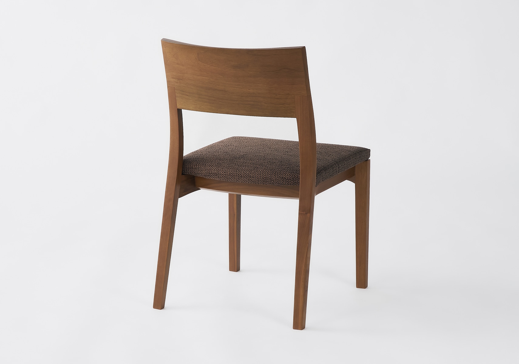 適度に柔らかくクッション性の高い座面と、幅広い背が身体をしっかりと受け止めるアームチェアとアームレスチェアです。背は、突板や集成材では味わうことの出来ない、木の素材感を生かした無垢の曲げ木を使用。背あたり良く熟考された女性的なカーブが、長時間でも疲れを感じさせません。