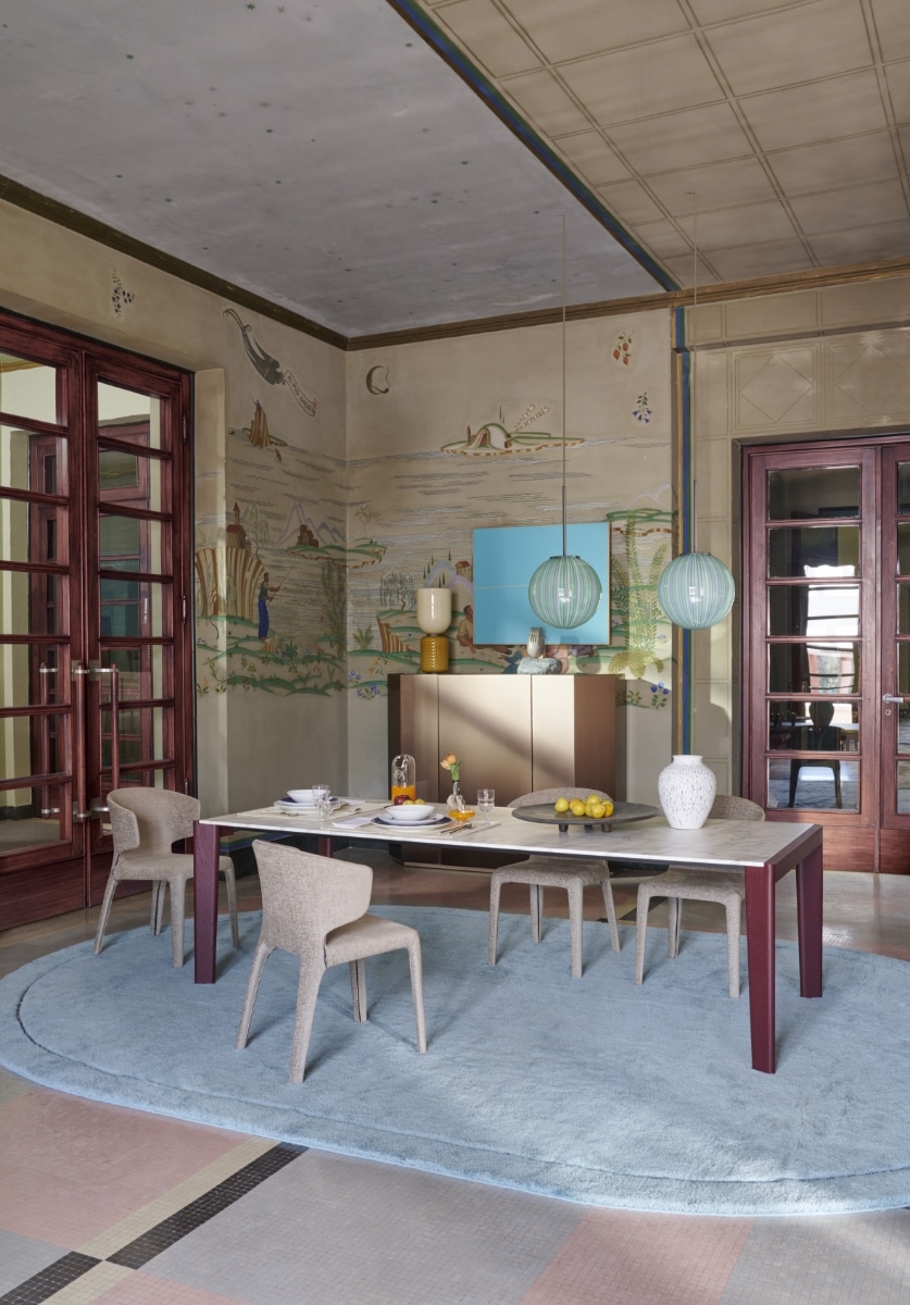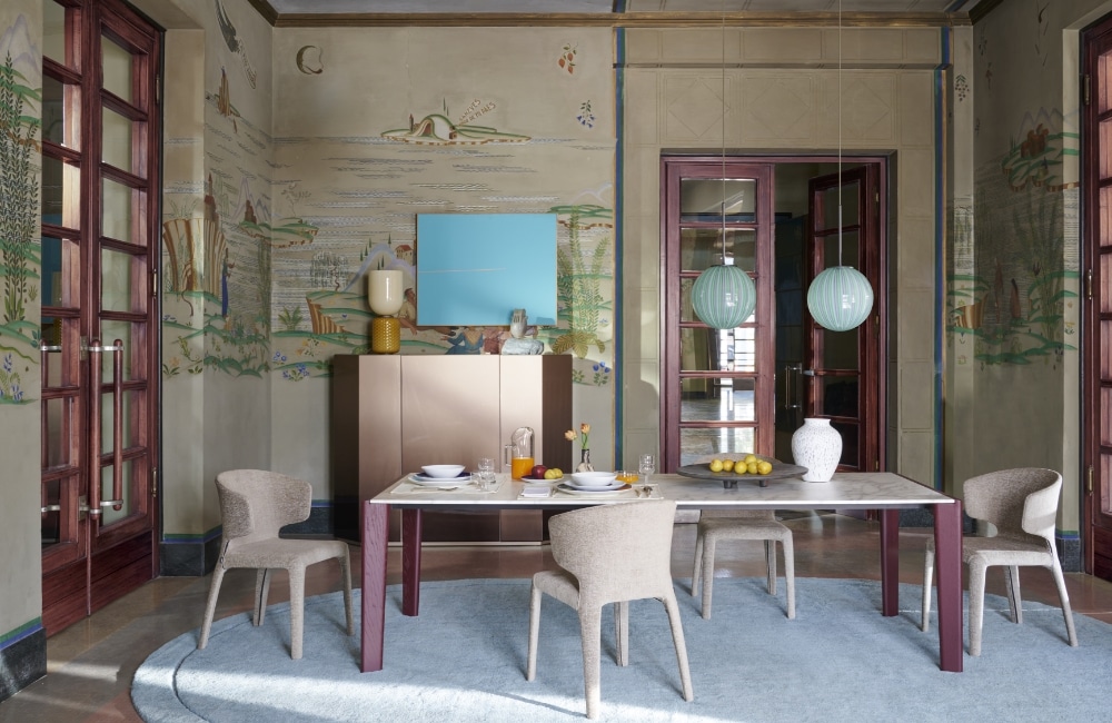 天板=大理石・カラカッタ, 脚部=オーク材・アマランス