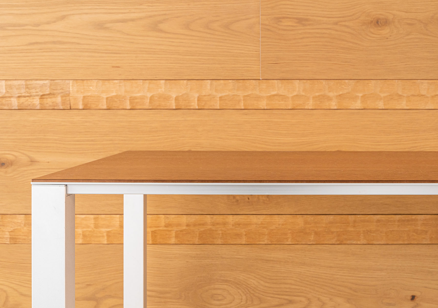 〔ブラック〕天板=アルミハニカムパネル・ブラックアルマイト仕上に(オーク材・ブラック染色塗装仕上/ブラックウォールナット材・ナチュラル塗装仕上)。
