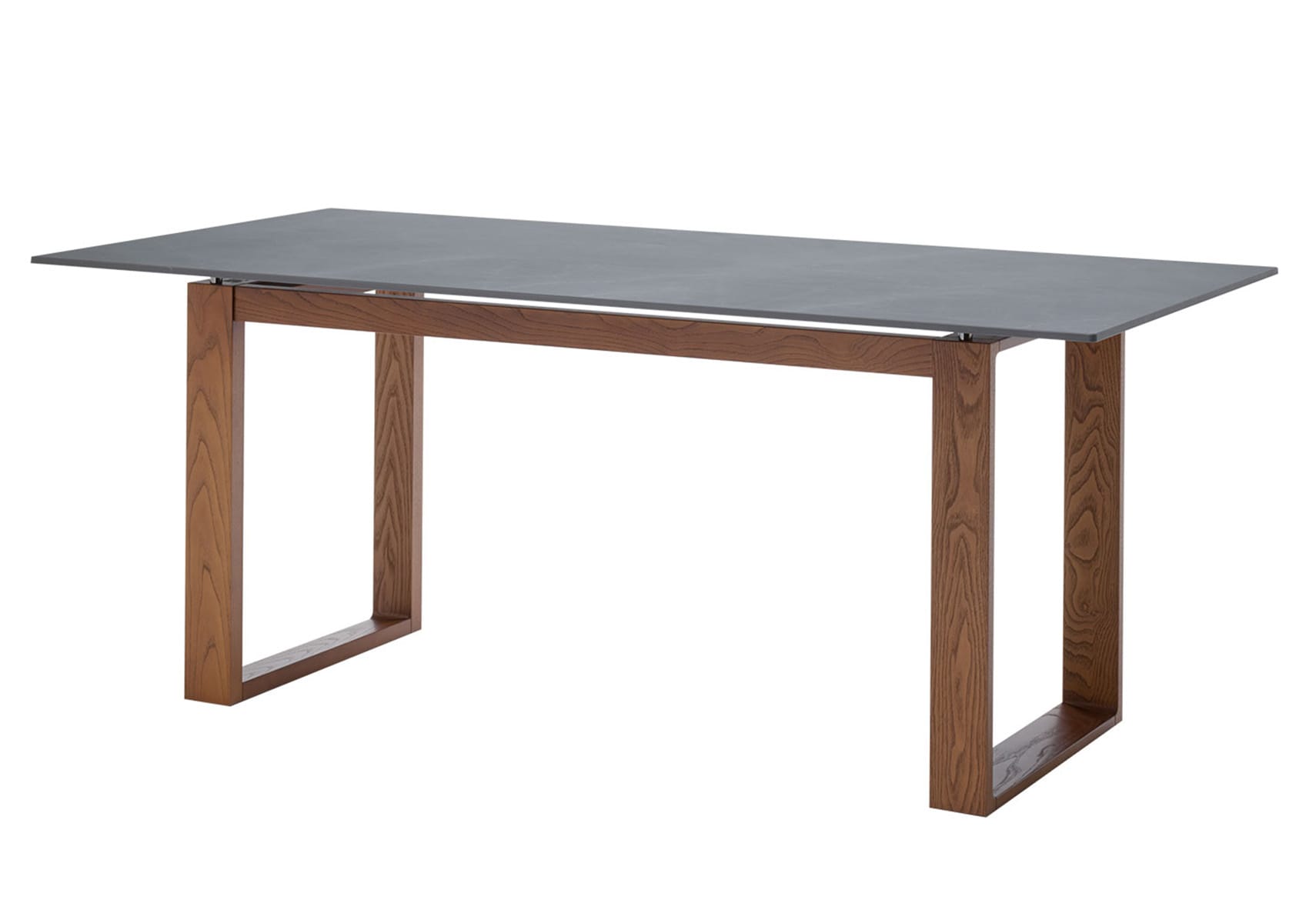 ループ脚のデザインを特徴とするテーブル。ループ脚の内側の縁は傾斜するデザインになっており、シンプルながら素材感の引き立つディテールに仕上がっています。ガラス越しに見える無垢材のフレームが一本一本異なる表情を見せ、ガラス天板とバランスよくマッチします。また、セラミック天板は焼き物ならではの繊細なニュアンスと独特の味わい深さがあり、傷や汚れ、熱に強くお手入れがしやすいなど機能的にも優れています。