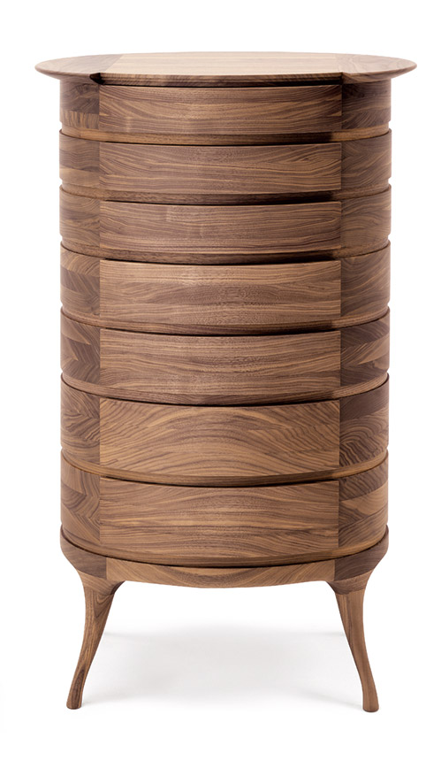 楕円形の柔らかなフォルムが特徴的な7段ドロワーのチェストです。