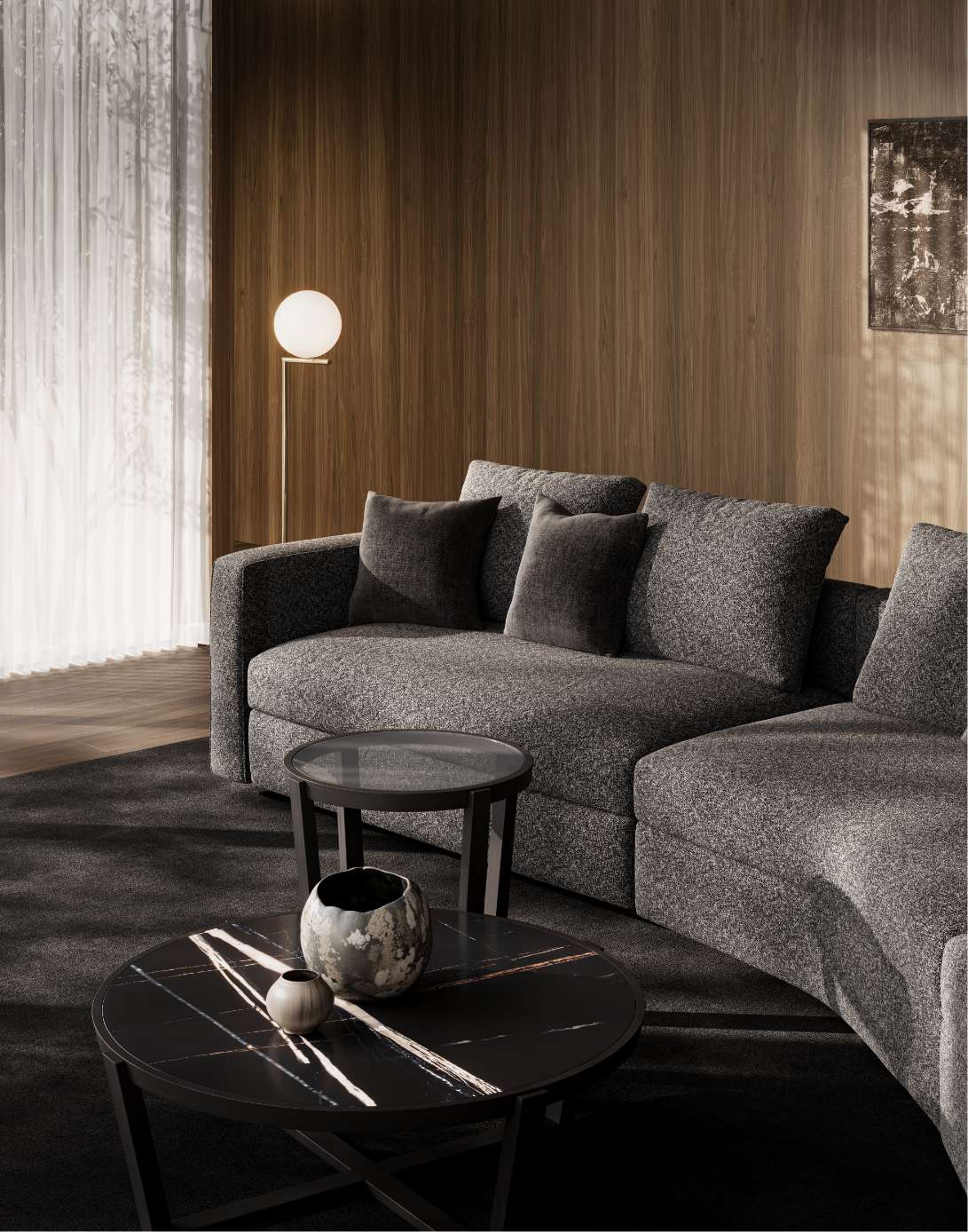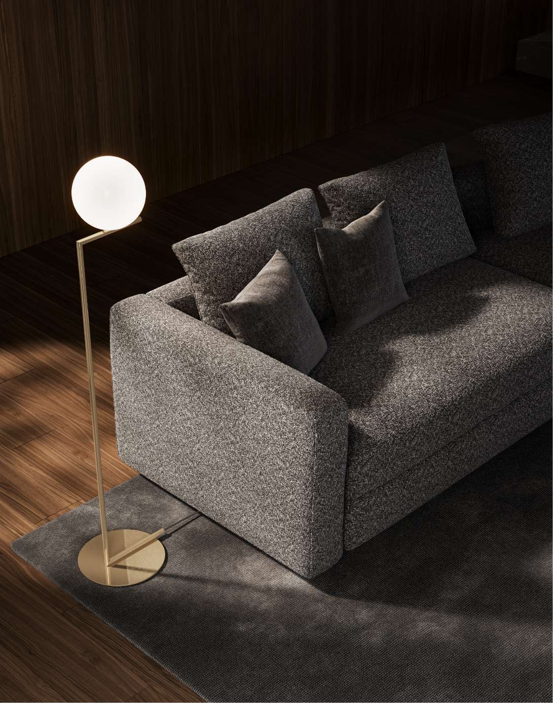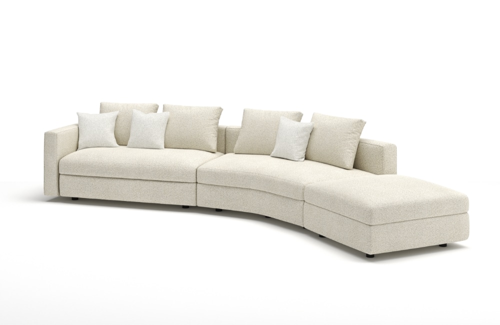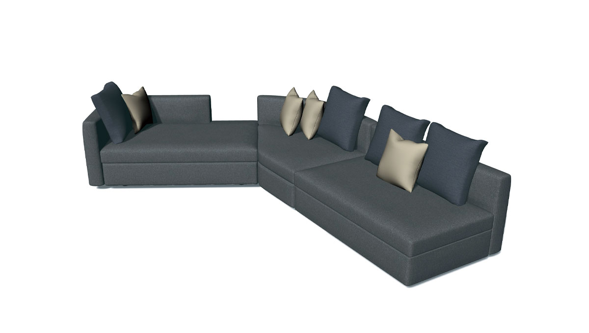 鳥が大空に翼を広げたような、美しい広がりを感じさせるシステムソファです。ストレートやカウチ型のみならず、ゆるやかな角度でレイアウト展開できるモジュールになっています。座る角度や方向も自由で思い思いにくつろぐことができ、新たなつながりをもたらす場所が生まれます。