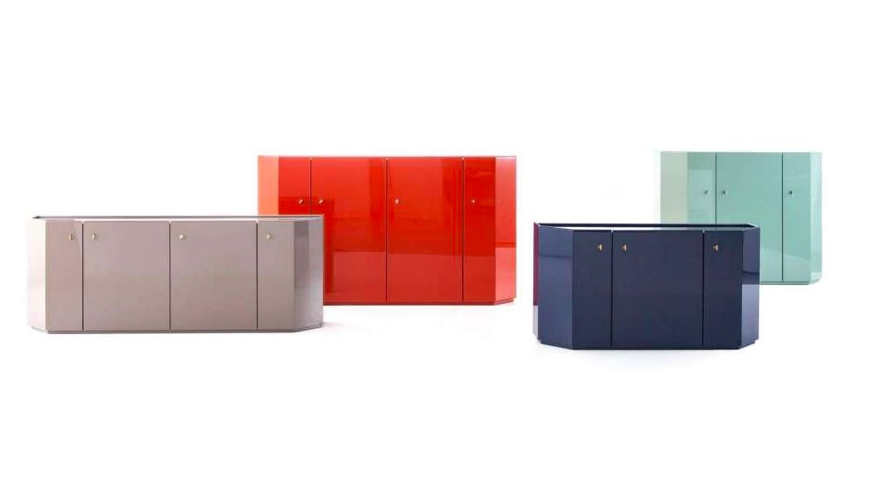 美しいラッカー塗装仕上げを最大限生かすようデザインされたキャビネットです。7種類いずれの仕様も両端の扉は独特の形状で、開いた時も美しく、カップボードとしてもお使いいただけます。また、クラシカルな取っ手の部分も特徴で、鍵のようにひねることで扉にロックがかかります。アンティーク家具などと組み合わせても美しいアイテムです。