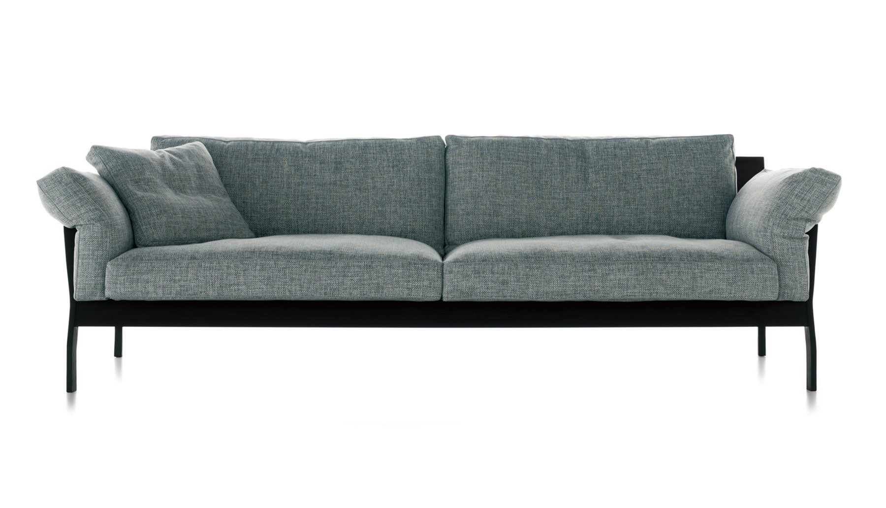 ロドルフォ・ドルドーニがデザインしたソファ。木製フレームに配された三角形や斜めのラインは「抜け」や「隙間」といった視覚的効果をもたらし、驚くべき軽量感を演出します。角と曲面、斜線と直線、華奢さと豊かな厚みといった絶妙なバランスによるフレームワークは、軽快さと優美さを感じさせます。ソファの仕上げとなる、やわらかく完璧なプロポーションのクッションは、フレーム部とぴったり調和し、誰もが思い描く快適性と満足感を実現しました。
