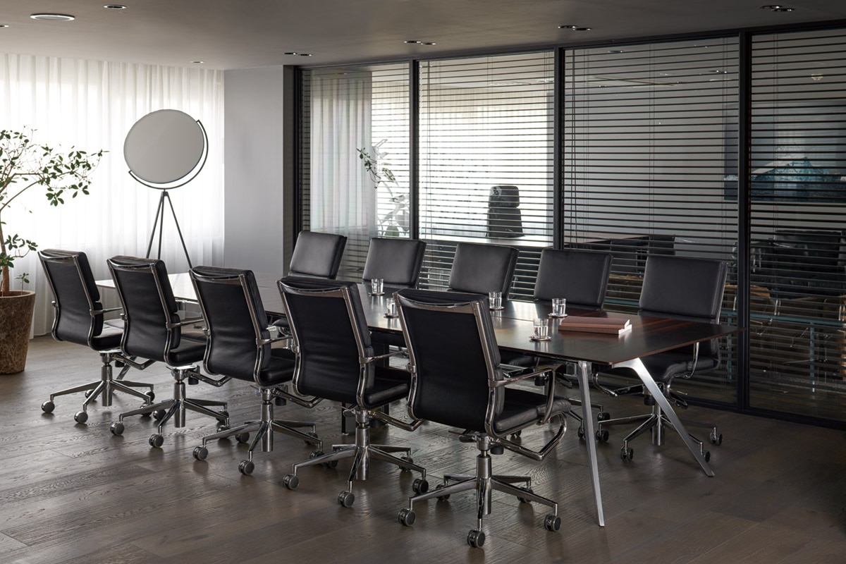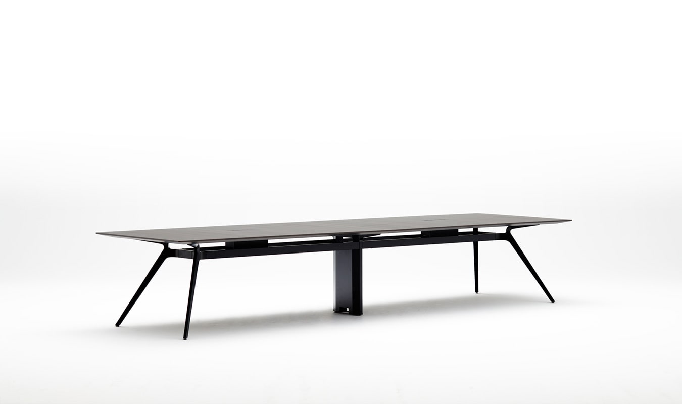 デザインはミニマムでありながらミーティングテーブルとして最大限の機能や表現力を発揮するというコンセプトで考えられました。デザイナーであるロドリゴ・トーレス氏のあらゆる思考、感情、経験が結びついて生まれたデザインであり、オリジナルのアイディアは彼の幼い息子が庭の木で遊んでいる様子をスケッチしている際に思いつきました。強度の高いアルミニウム鋳造を用い、スマートでエレガントな脚部を実現。脚部のモジュールが全体のコアとなり、構造体、配線レール、意匠、強度の役割を同時に果たしています。JOYという名前は、この脚部を2つ並べると喜びに溢れる人のシルエットに見えるということに由来しています。