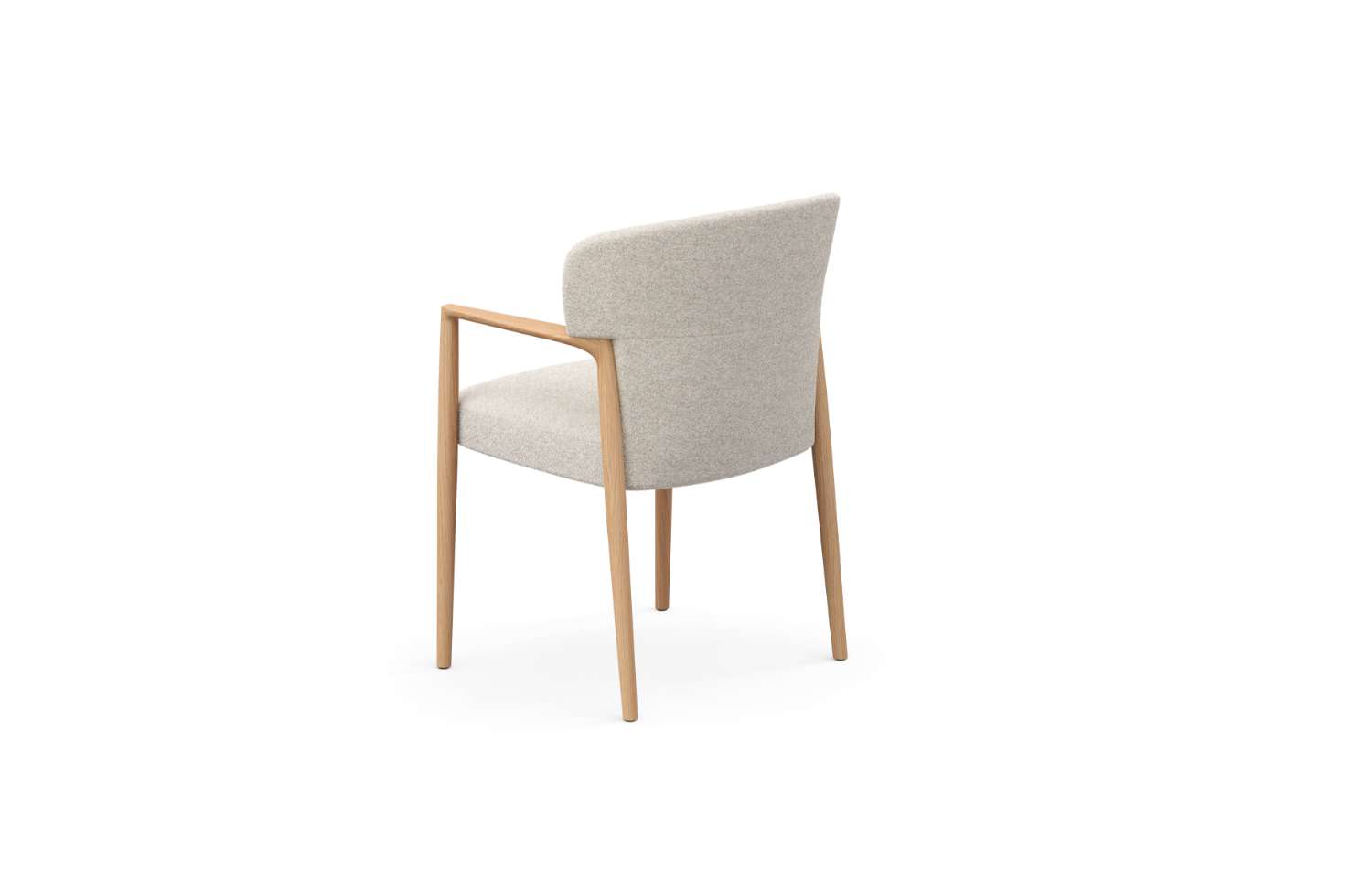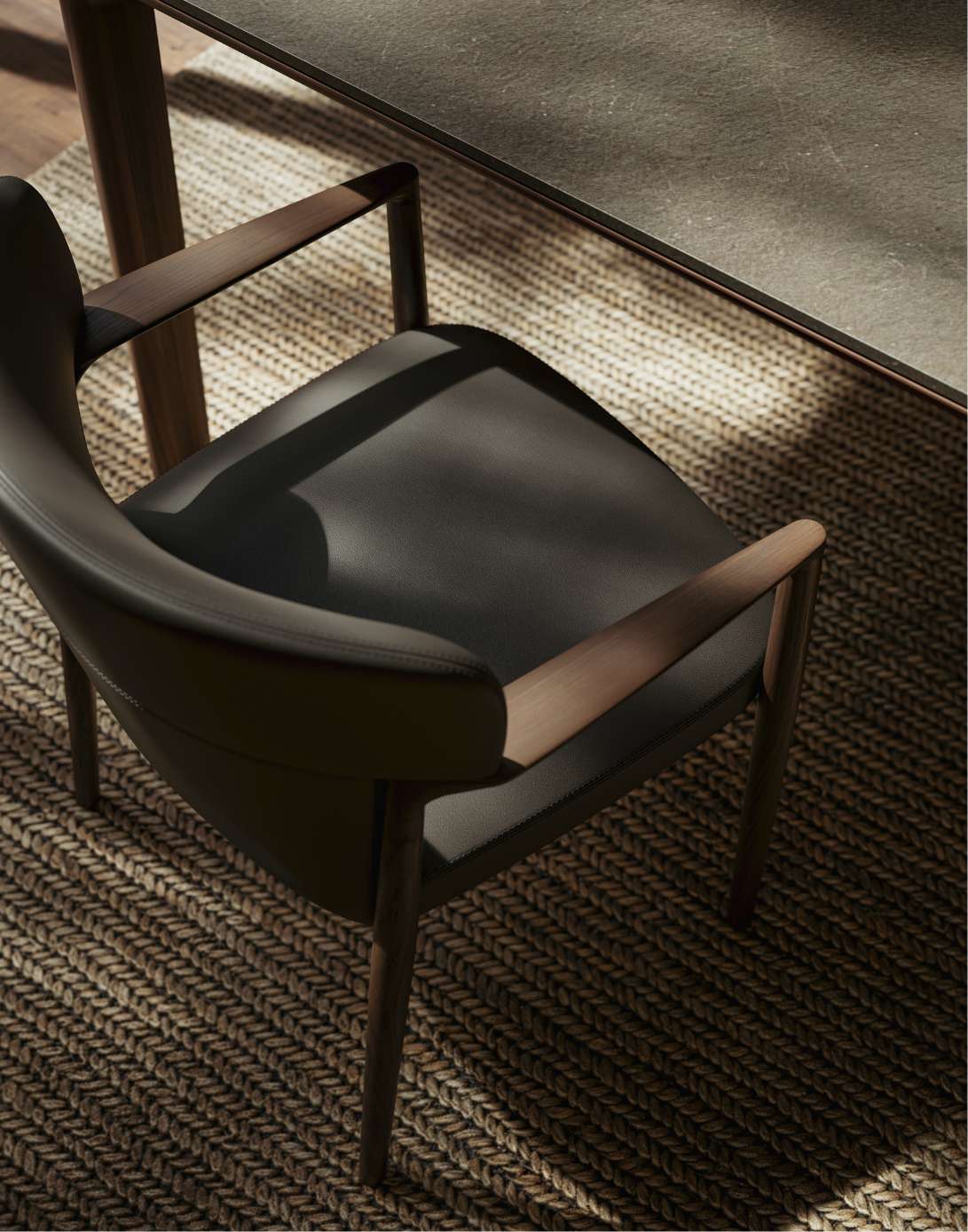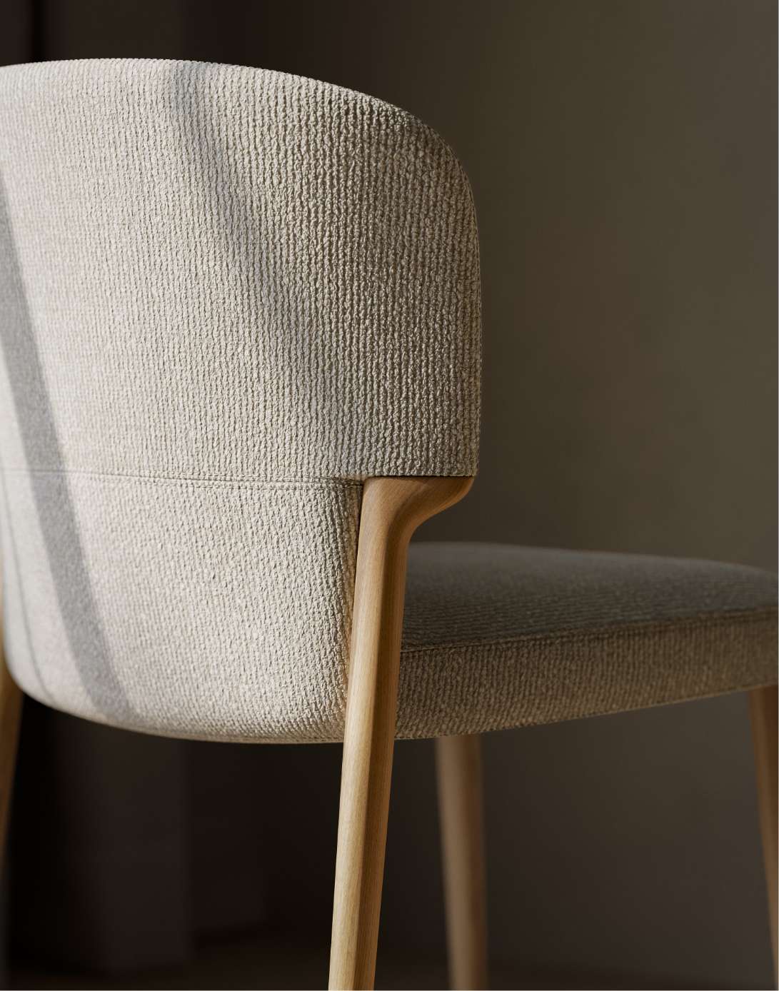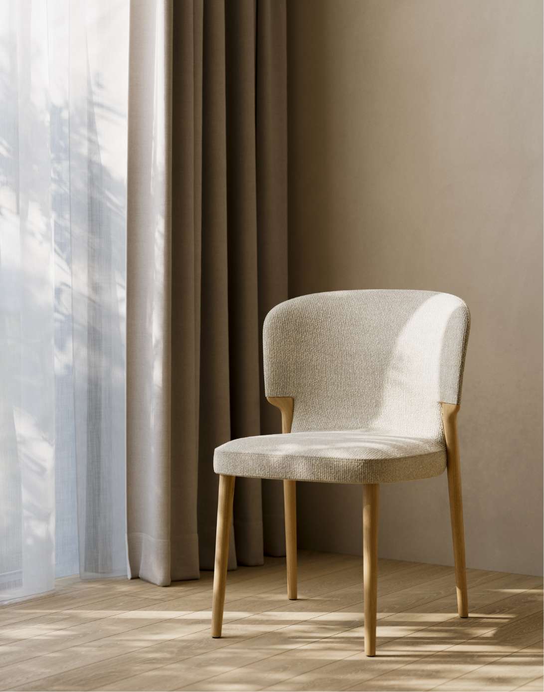 曲線的なオーガニックフォルムが特徴のダイニングチェア。ゆったりと座る人を迎え入れるデザインが、安心感をもたらします。木部とカーブの形状にこだわり、洗練された優雅な存在感を醸し出す一脚です。 オーク材ナチュラル、ウォールナット材ナチュラル、アッシュ材ブラックの3種類の木部と、さまざまな張地の組み合わせをお選びいただけます。座面にはモールドウレタンを使用し、つい長居してしまうほどの快適な座り心地を実現しています。 「LENDON(レンドン)」は、"Lean"(寄りかかる、傾ける)と、"Don"(身に着ける、かぶる)を掛け合わせた名前で、心地よく体を預けられる優雅なサポートを提供するチェアです。