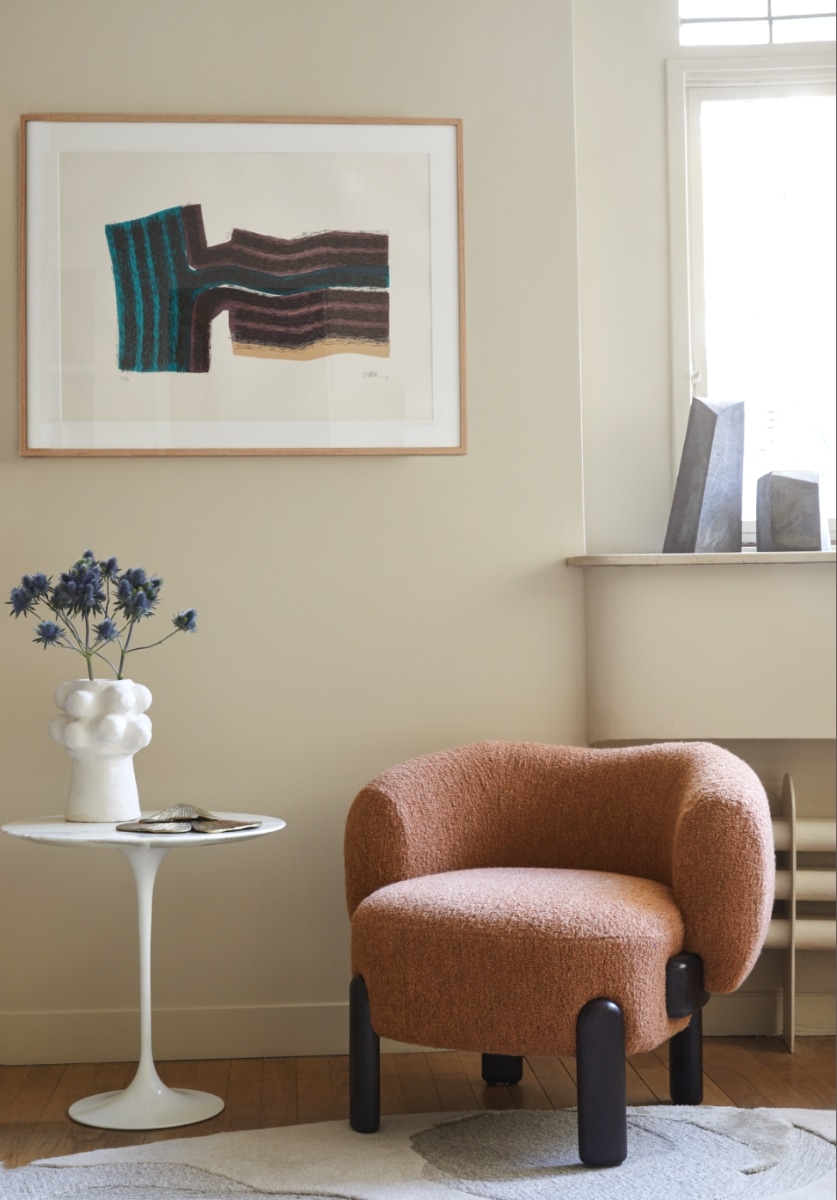 ころんと丸いフォルムを「月のように丸い(round as moon)」という表現がネーミングの由来。 柔らかなラインと丸みのあるフォルムが魅力のラウンジチェアです。丸くボリュームのある座面とU字型のアーム、楕円に削られた脚と座面とアームに挟まれたU字型の木部がデザイン的な特徴となっています。