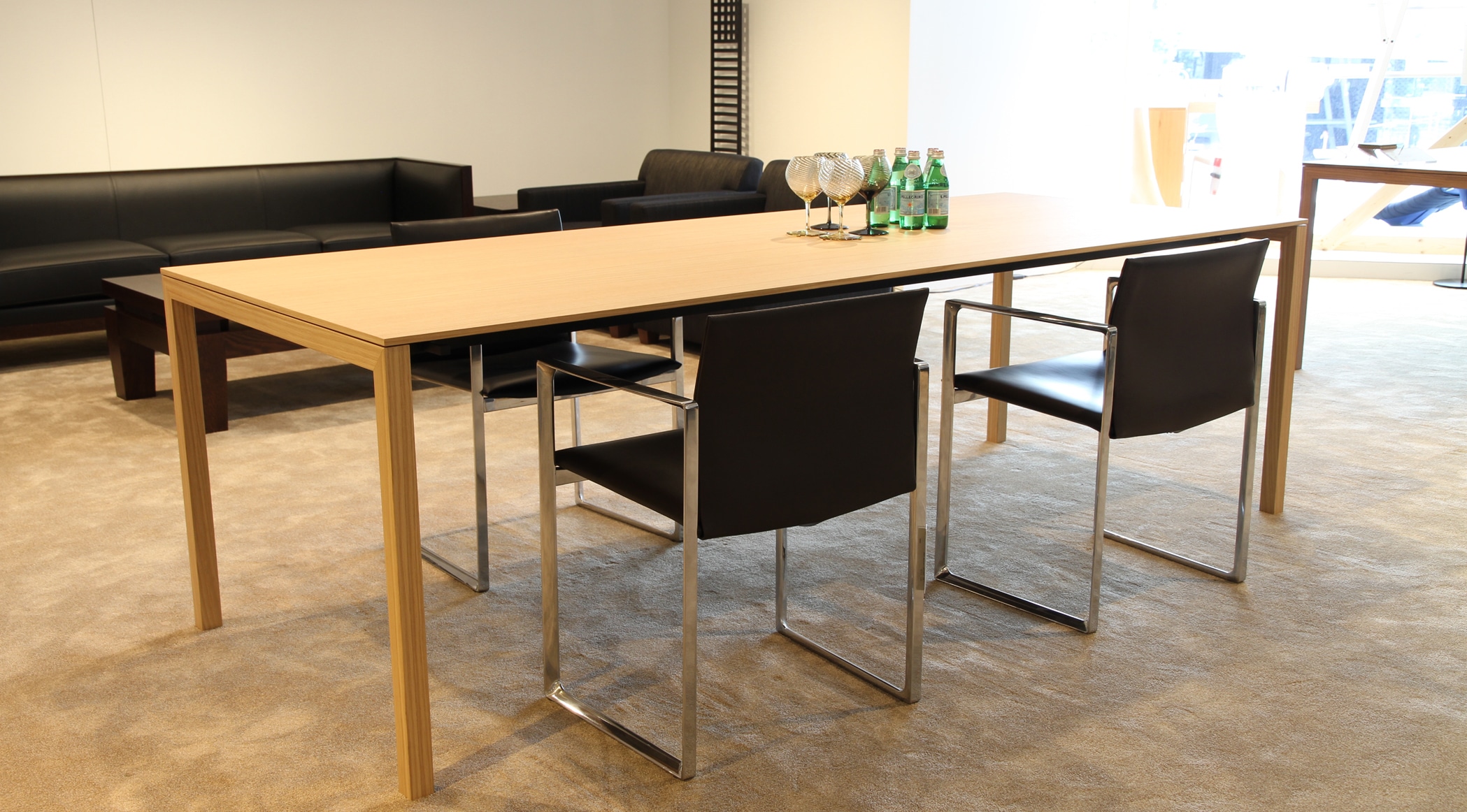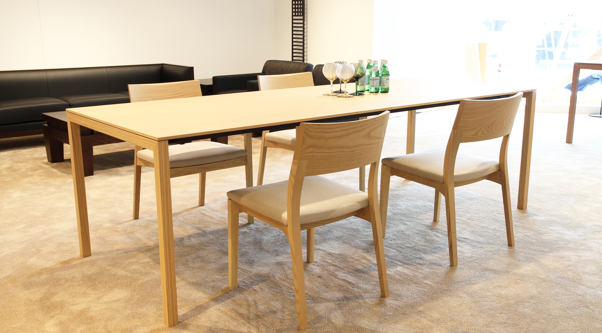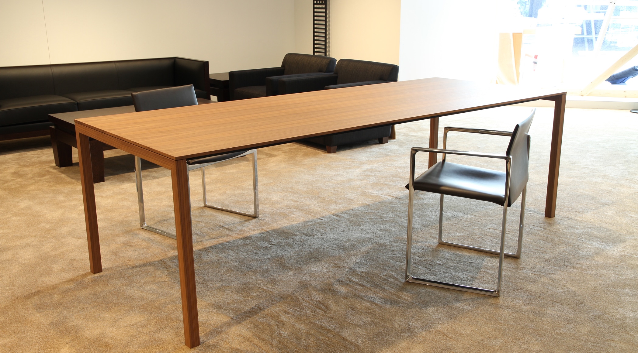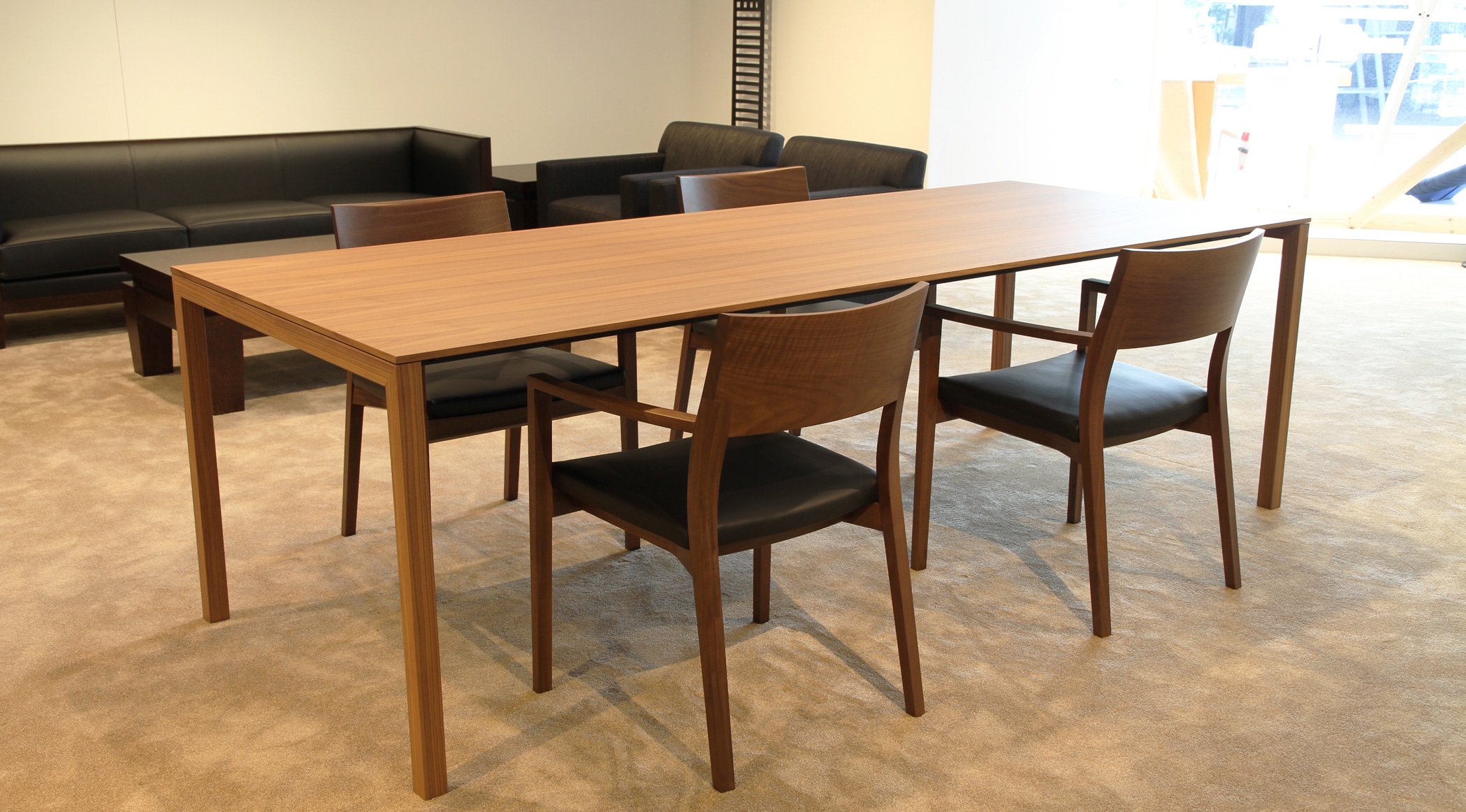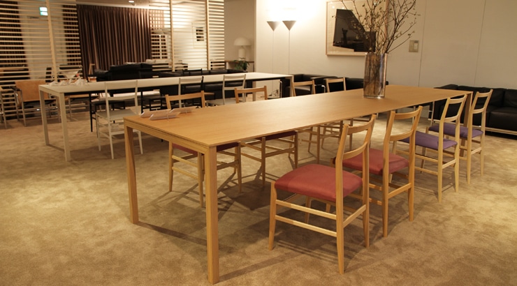 繊細な表情と堅固なフレームをあわせもつナーンは、2つのエッセンスを持ったエクステンション型テーブル。極限まで薄く仕上げた厚さはわずか10mmの天板は、カッシーナ社がこれまでに培った豊富な木工技術と、モダンインダストリアルのデザインを融合して実現しました。天板はオーク材とアメリカンウォールナット材を使用。化学変化により着色するという画期的な手法を取り入れることで、一般的なニス塗装に見られる人工的な見た目とは違い、自然な木目がそのまま活かされています。