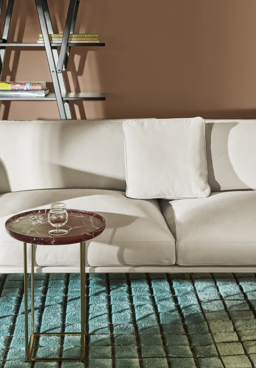 カッシーナならではの精緻なクラフトマンシップが光る高度な縫製技術により、テーラーメイドならではの折り目やインビジブルステッチが、ミニマルで落ち着いたシルエットを美しく引き立てます。