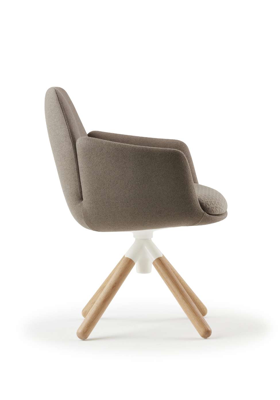 POPPY(ポピー)は、パトリシア・ウルキオラのデザインによる、軽やかで有機的なフォルムと温かみのある色合いが特徴のラウンジチェアです。背もたれが自然にしなやかに動き、座る人に快適さを提供します。会議室やオフィス、リラックススペースなど、様々なシーンにマッチする魅力的な存在感を持つラウンジチェアです。