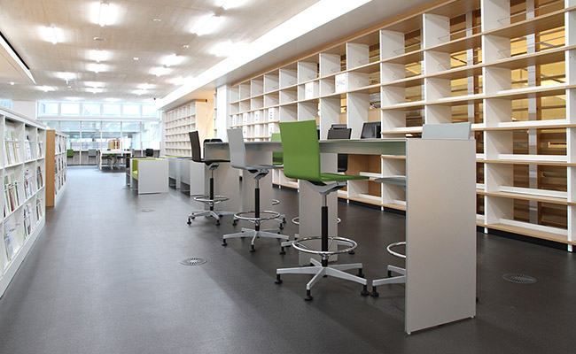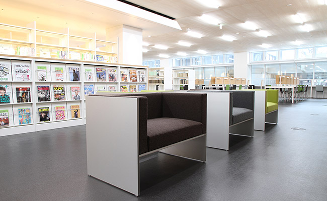 国土交通省の省CO2先導事業として採択された、環境共生型図書館。東京経済大学では、キャンパスが国分寺崖線に沿って位置する自然の一部であることを自明し、「エコキャンパス宣言」を掲げてきた。キャンパスでは野鳥がさえずり、緑地と東京名湧水57選の「新次郎池」も隣接する。本図書館は武蔵野の森を保全する緑の回廊の一部として、自然との共生を目指している。館内には最大84万冊を備え、様々なデザインの開架スペースによって学生への学びの場を提供している。