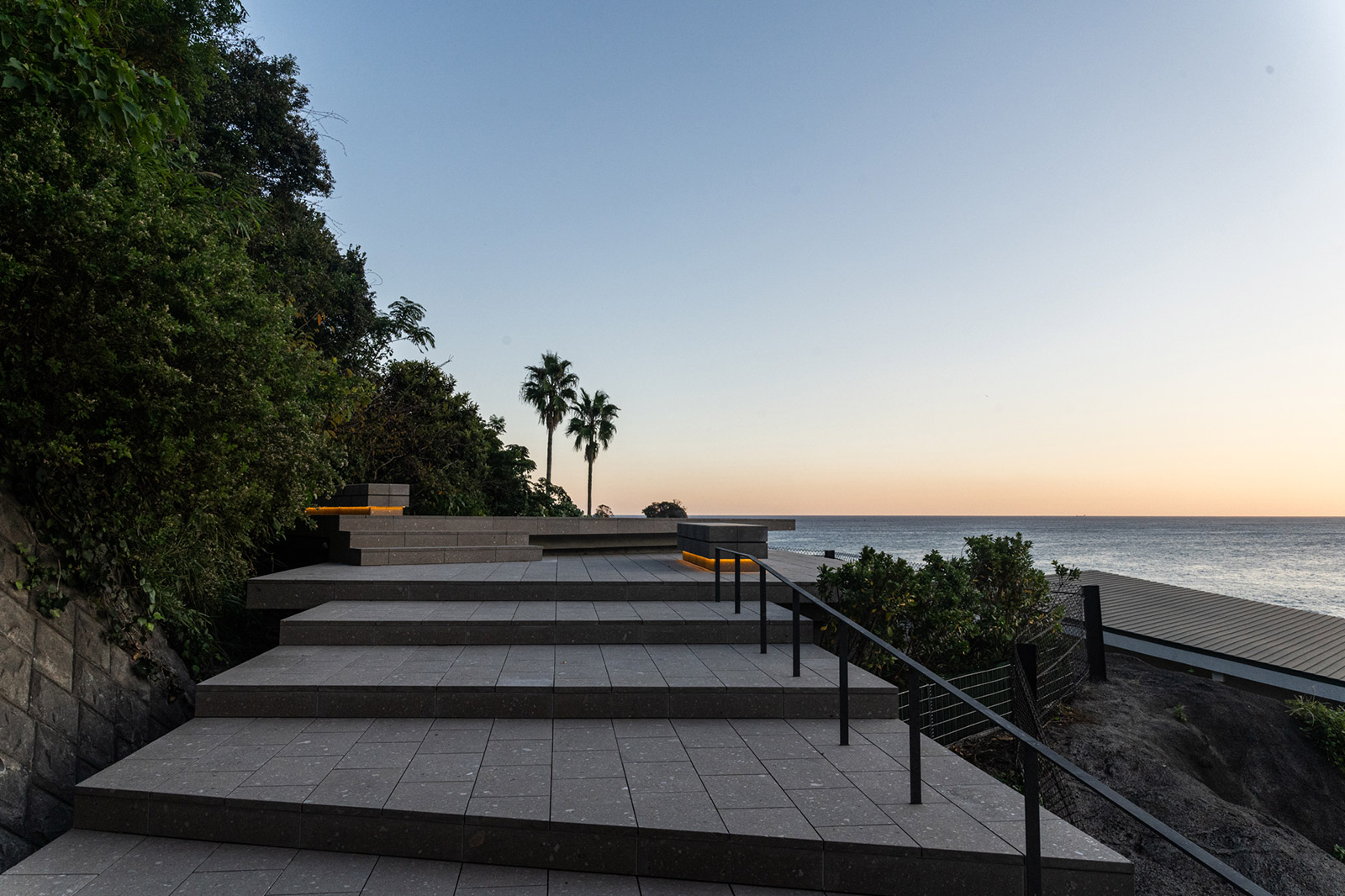 海側の「オーシャンテラス」から、2つの建築、庭園を通じて山の「STARDAM(星見台+ダム)」まで繋がる、建築だけで自然と一体となった道が完成。土地のポテンシャルを十分に引き出しました。
