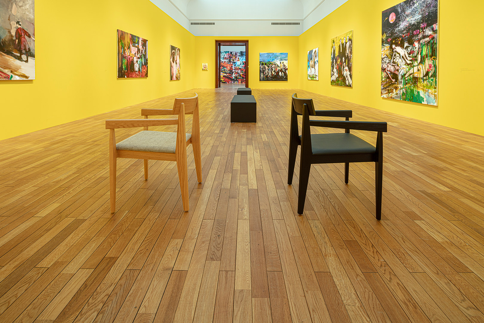 「井田幸昌展」では展示空間に合うように、オールブラックの仕様と座面がファブリックの仕様を製作し採用した。
