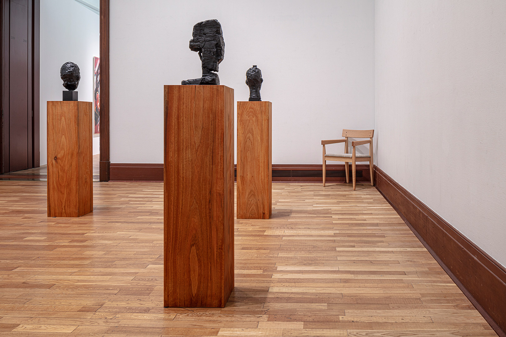- ROOM2では、等間隔に並ぶブロンズ作品を周遊しながら鑑賞する。ROOM3では、黄色の壁が展示に対する期待感や幸福感を抱かせる。抽象作品が壁一面に展示されたROOM4は、壁と作品が一体化しているようである。この展示方法により、来館者は作品を近くで鑑賞したり、遠くから鑑賞を行う。
