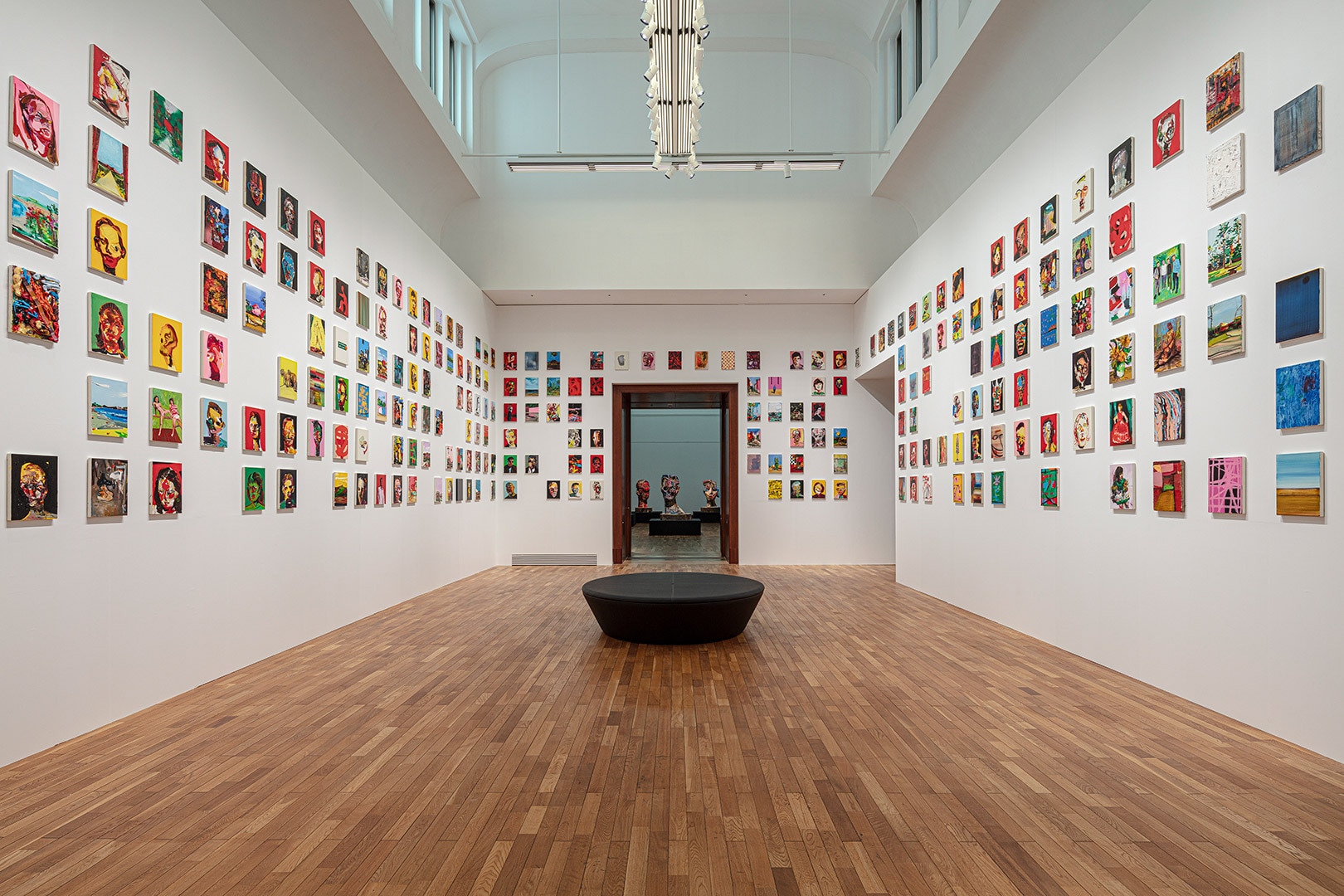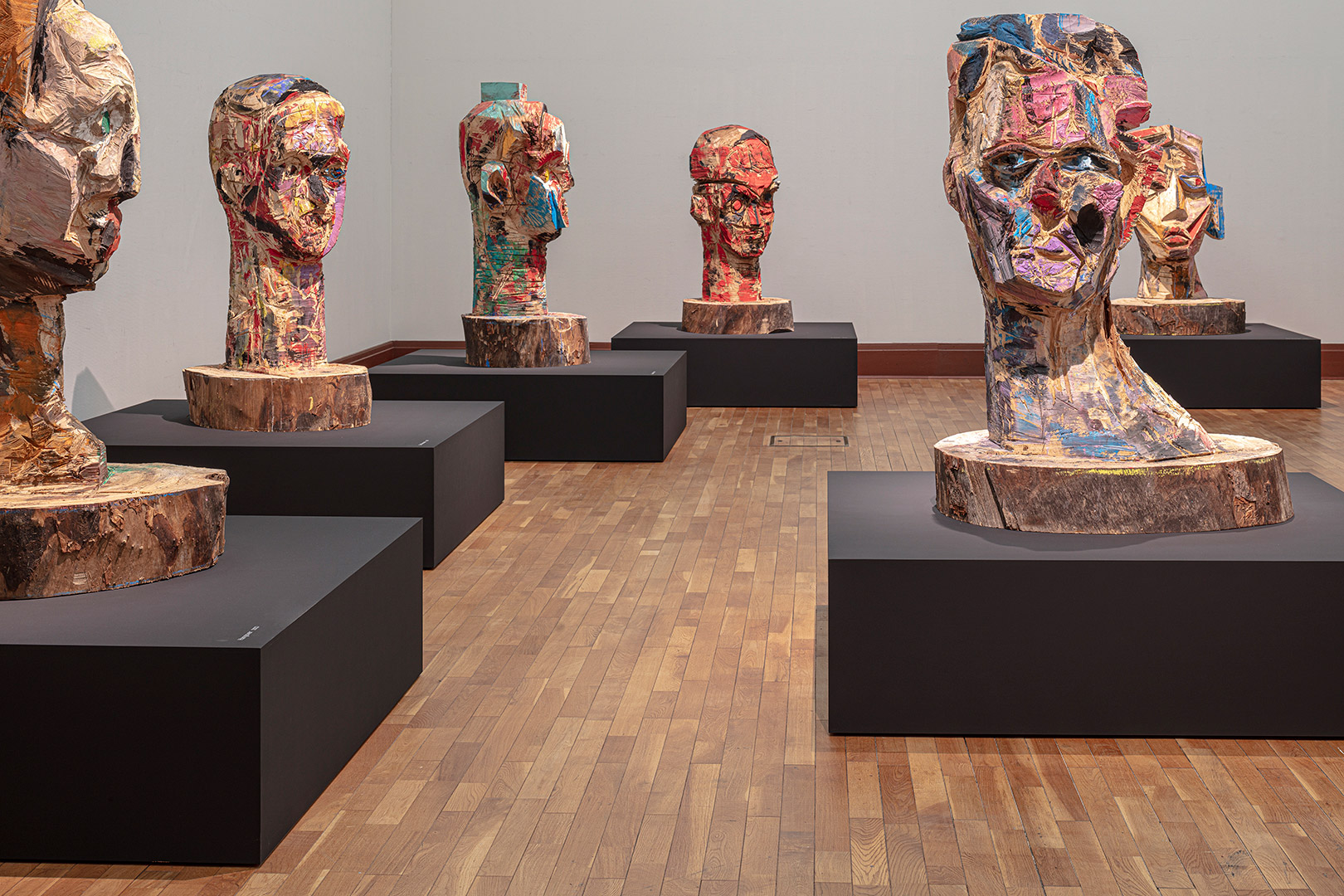 ROOM5には300枚の作品が壁一面に展示されており、来館者は展示室の中心からたくさんの作品を見上げたり、お気に入りの作品を探しながら、作品に近づいて鑑賞する。ROOM6では、迫力のある木彫刻がランダムに並べられ、来館者の好きな順番で鑑賞する。
