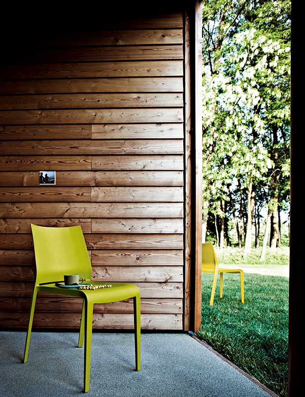 セミアウトドアユースのスタッキングチェアです。座り心地、軽量、スタッキング機能、洗練された繊細なデザインなど、究極のコンセプトで設計されました。本体はポリプロピレン・ファイバーグラス強化材を用い、8脚までスタッキングできます。すべての要素を合わせ持った、理想的なスタッキングチェアが実現しました。