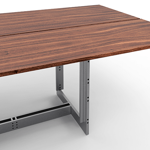 1974年にカルロ・スカルパがデザインした名作で、彫刻的な美しさで人気の高いレジデンシャルコレクションのDOGEテーブルに続く作品です。DOGEテーブルのテクスチャーを踏襲しながらも、ベースが上下逆さまになり、設置面積が小さくなったことで限られたスペースのオフィス空間でも使用できるようになりました。また、天板中央には配線プレートが組み込まれています。