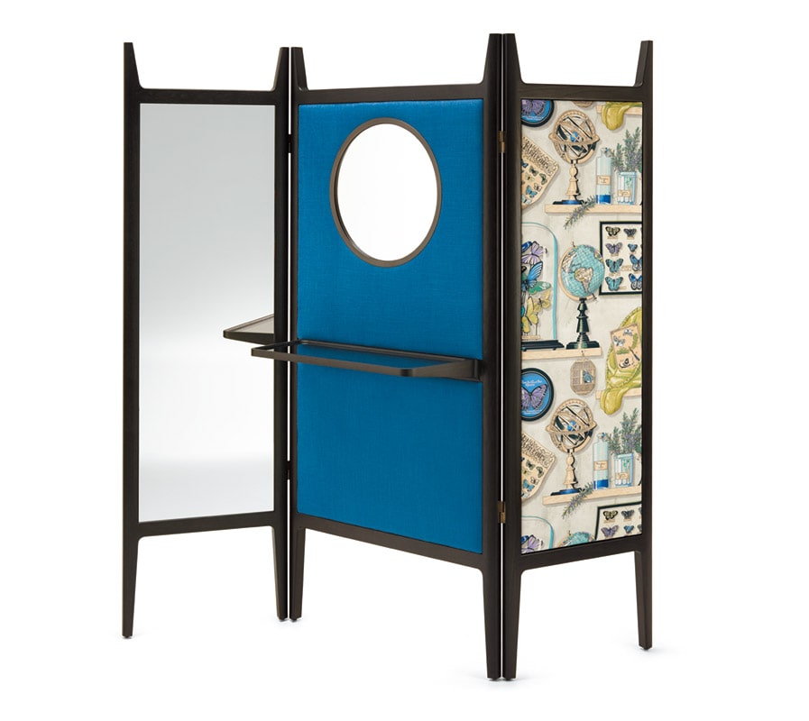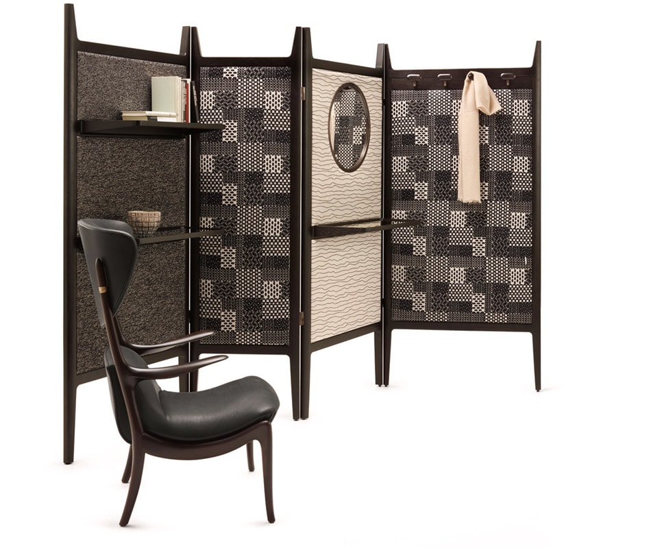 2種類の幅が基本のモジュールです。棚、ミラー、コートハンガーなどのオプションを組み合わせて自分仕様のパーティションが完成します。パネルはウッド、ミラーのほか、ファブリック、レザーともに選択可能です。