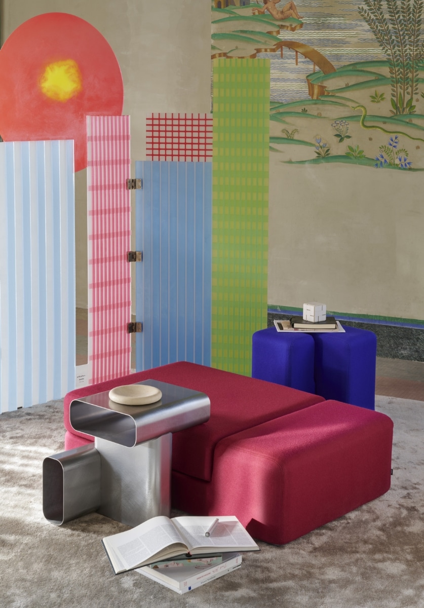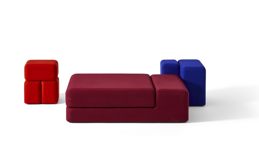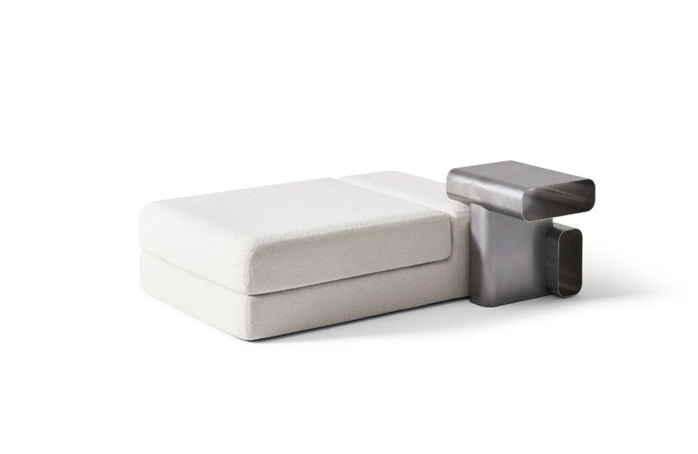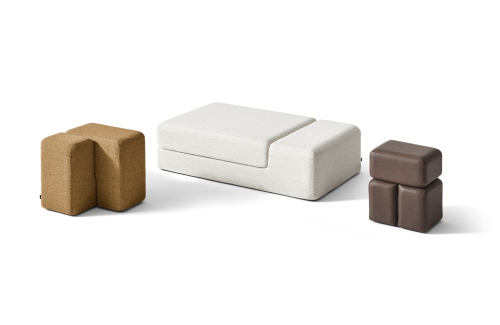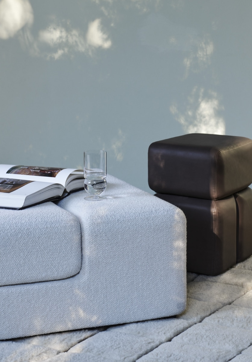 彫刻的な量感、対照的な質感。SOFT CORNERS(ソフト・コーナー)の特徴は、建築の要素、とりわけ、様々な形が互いに支え合って完成する石垣の安定した構造から着想を得てデザインされました。3種類のソフトな形状のオットマンと、対照的なインダストリアルな雰囲気のスチール製コーヒーテーブルのコレクションを自由に組み合わせることができます。