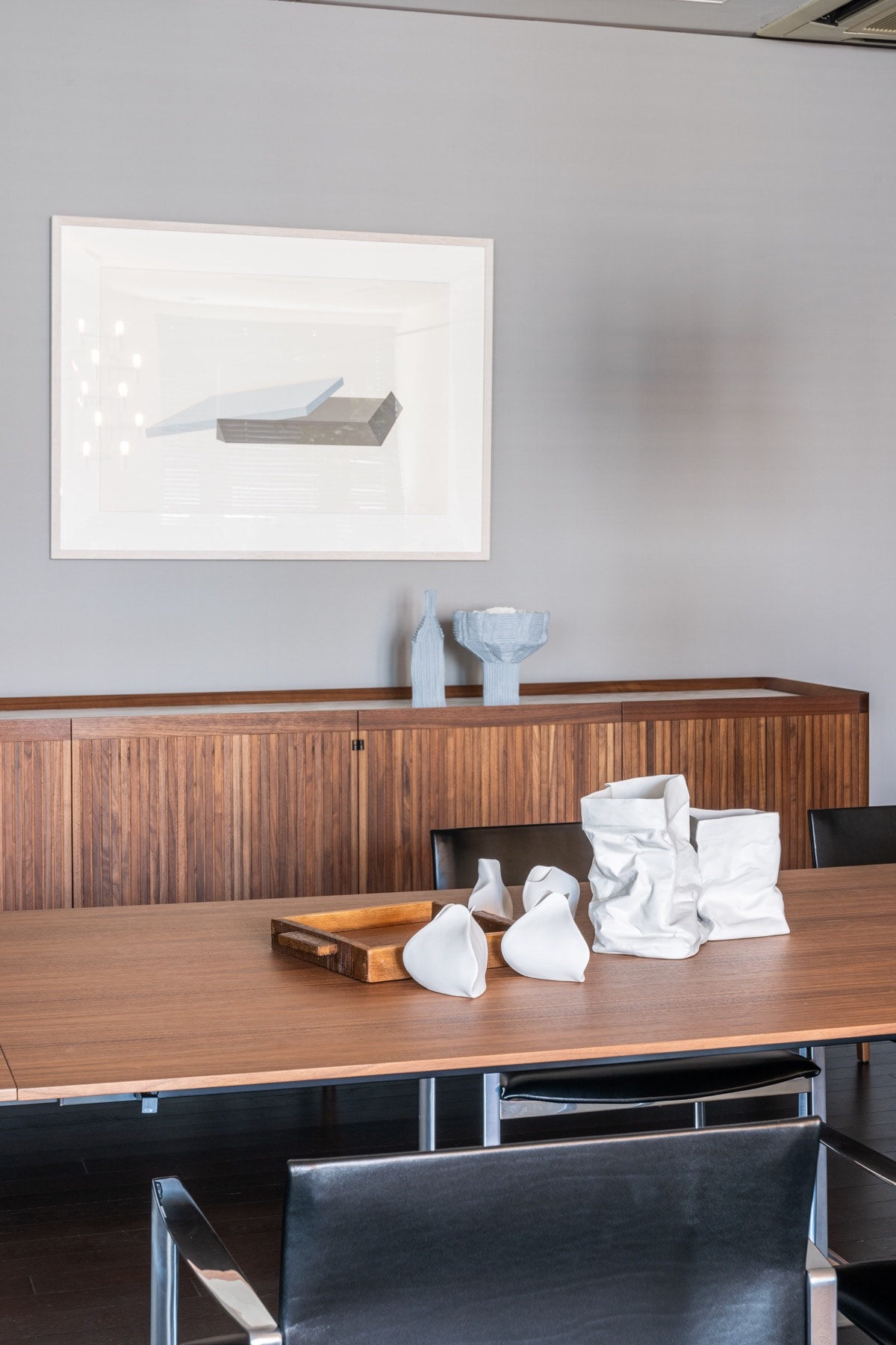 .白・グレー・ブラックなどのニュートラルカラーに絞ることで小物が引き立ち、空間にコントラストが生まれます。 ミニマルでありながら、クラフト感のある有機的なラインが加わりアーティスティックな雰囲気を生み出します。