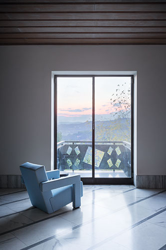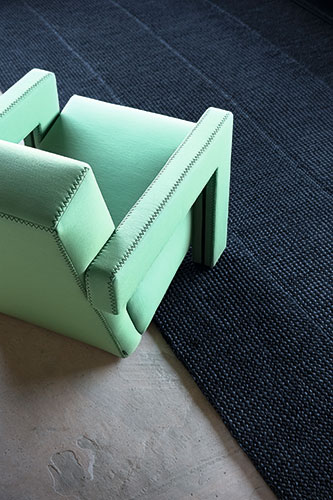 1935年、オランダの老舗デパート「メッツ」の依頼で生まれたソファ。真横から見ると重心が低く、重厚感のあるガッチリとしたフォルムですが、正面、斜めからは軽やかにも見え、さらに独特のステッチが個性を際立たせています。硬質なデザインはファブリックの素材感で和らげられていますが、布地の張り合わせ部分の縫い目で、面のイメージが強調され「レッド&ブルー」と同様、ヘーリット・トーマス・リートフェルトの世界が表現されています。90周年記念の新仕様として、従来のステッチに加え5色のジグザグステッチが追加になりました。