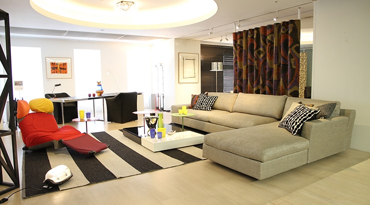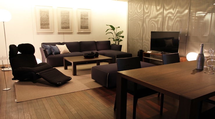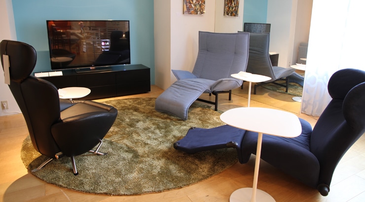 ※左右のヘッド部分が前後に動き、サイドのノブで背の角度が自由に変えられます。ベース部分を伸ばせばアームチェアからシェーズロングに用途が変えられます。