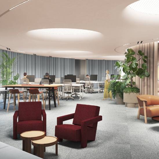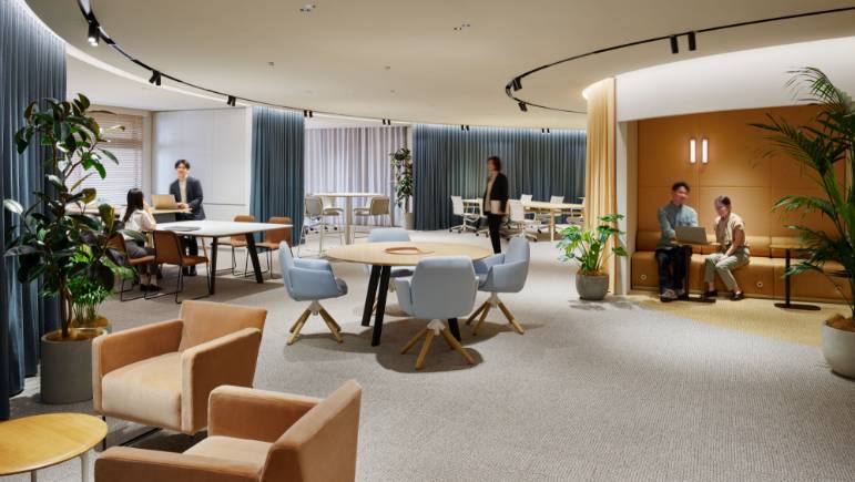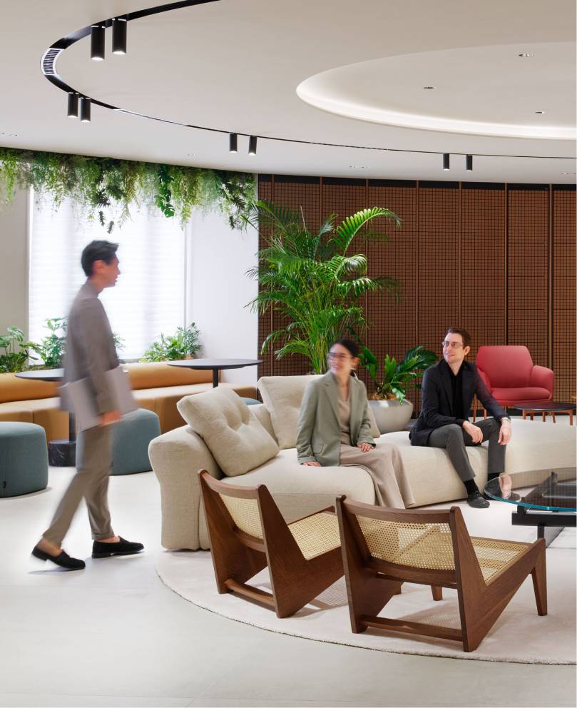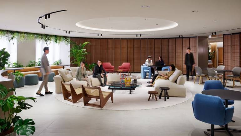 カッシーナ・イクスシーは 本社オフィスをビル内でフロア移転し、 ショールームオフィスとしてオープンします。 オフィスの中央に配置した 円形のスペース“AGORA”は、 古代ギリシャ語で「広場」を意味します。 人々が自然に集まり、議論や交流を深め、 新しいアイデアが生まれる「創造のハブ」。 機能とデザインが融合した クリエイティブなオフィス空間で、 柔軟かつ創造性にあふれる働き方を ご体感ください。