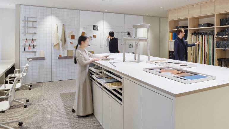カッシーナ・イクスシーは本社オフィスをビル内でフロア移転し、 ショールームオフィスとしてオープンします。 オフィスの中央に配置した円形のスペース“AGORA”は、 古代ギリシャ語で「広場」を意味します。 人々が自然に集まり、議論や交流を深め、 新しいアイデアが生まれる「創造のハブ」。 機能とデザインが融合したクリエイティブなオフィス空間で、 柔軟かつ創造性にあふれる働き方をご体感ください。