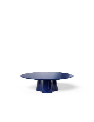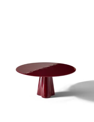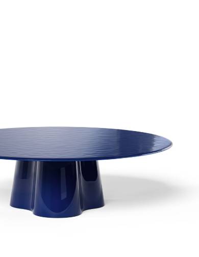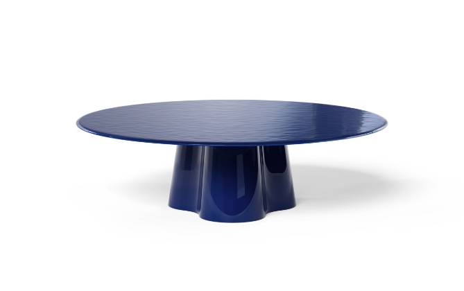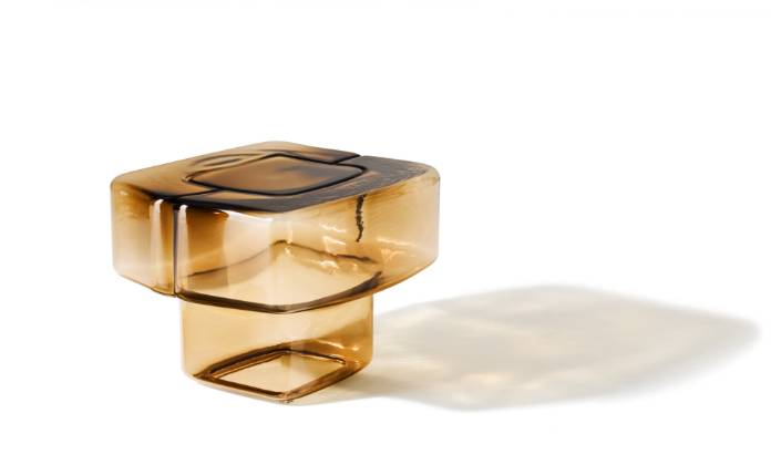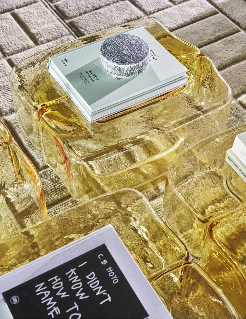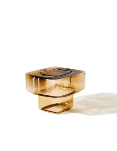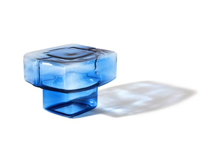 吹きガラスの流動性と彫刻的な美しさを融合させたアートピースのようなサイドテーブルです。鋳鉄の型に吹き込んで成形される完全な手仕事により、イタリア・ヴェネト地方の熟練職人が仕上げるこの作品は、厚みの異なるガラスが生み出す光の反射と色の重なりが特徴です。